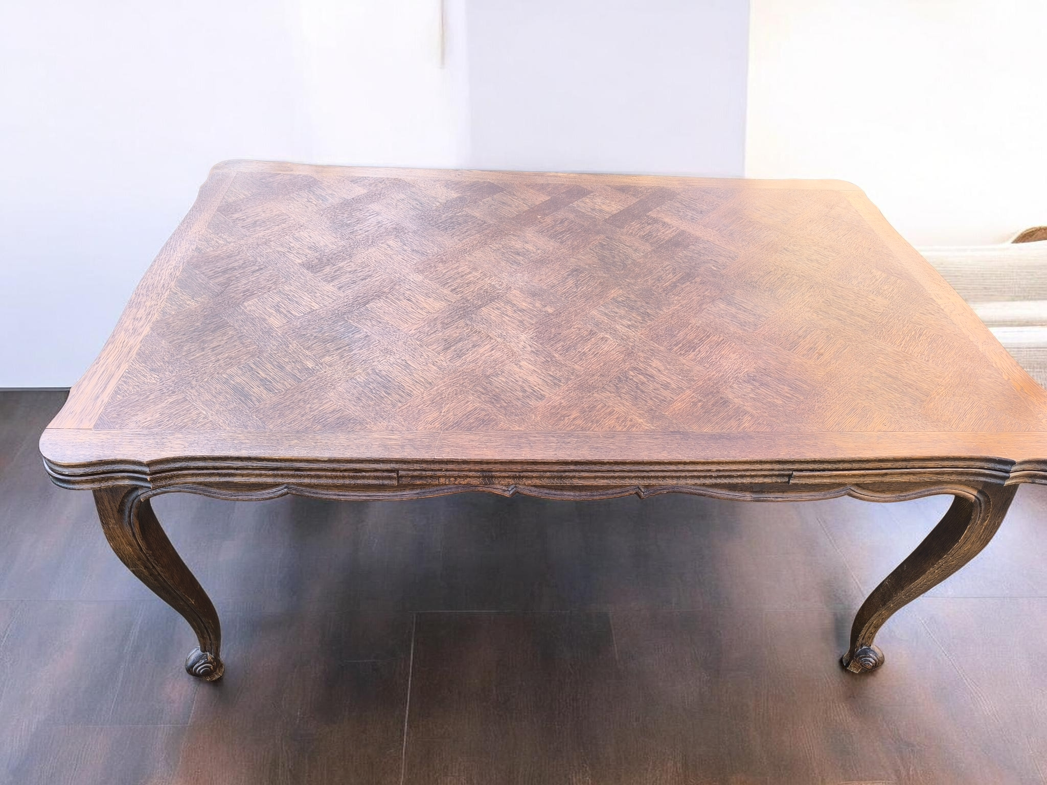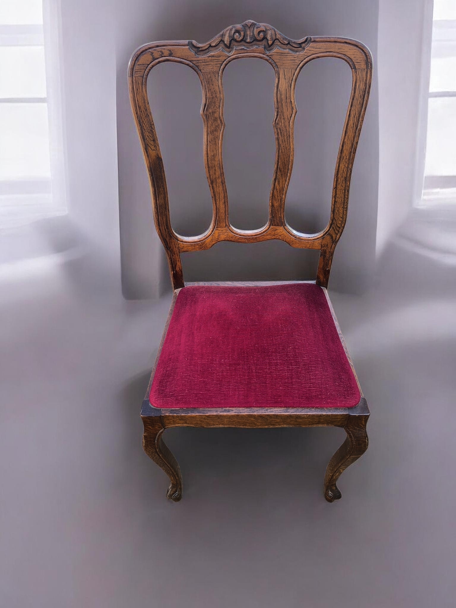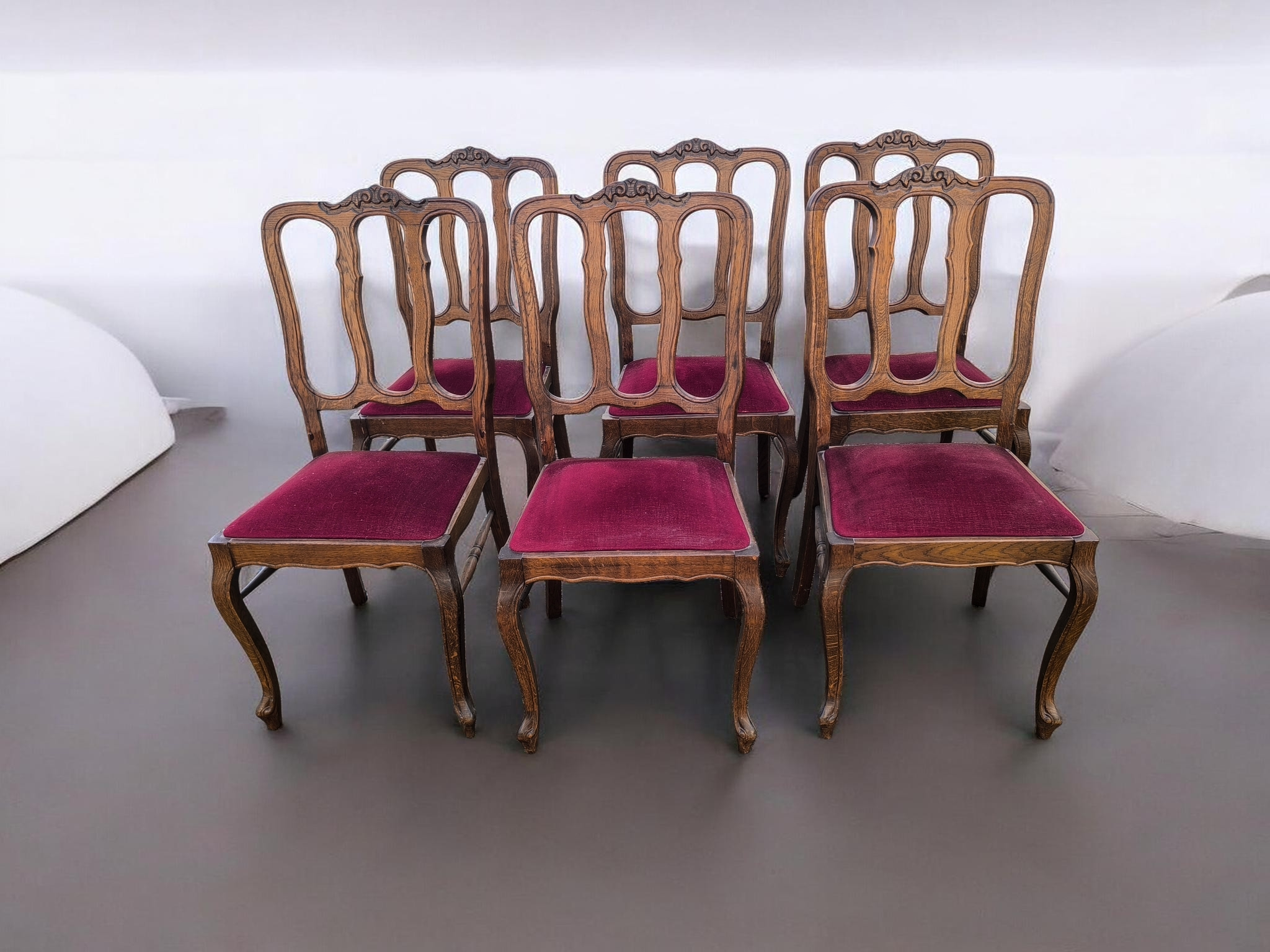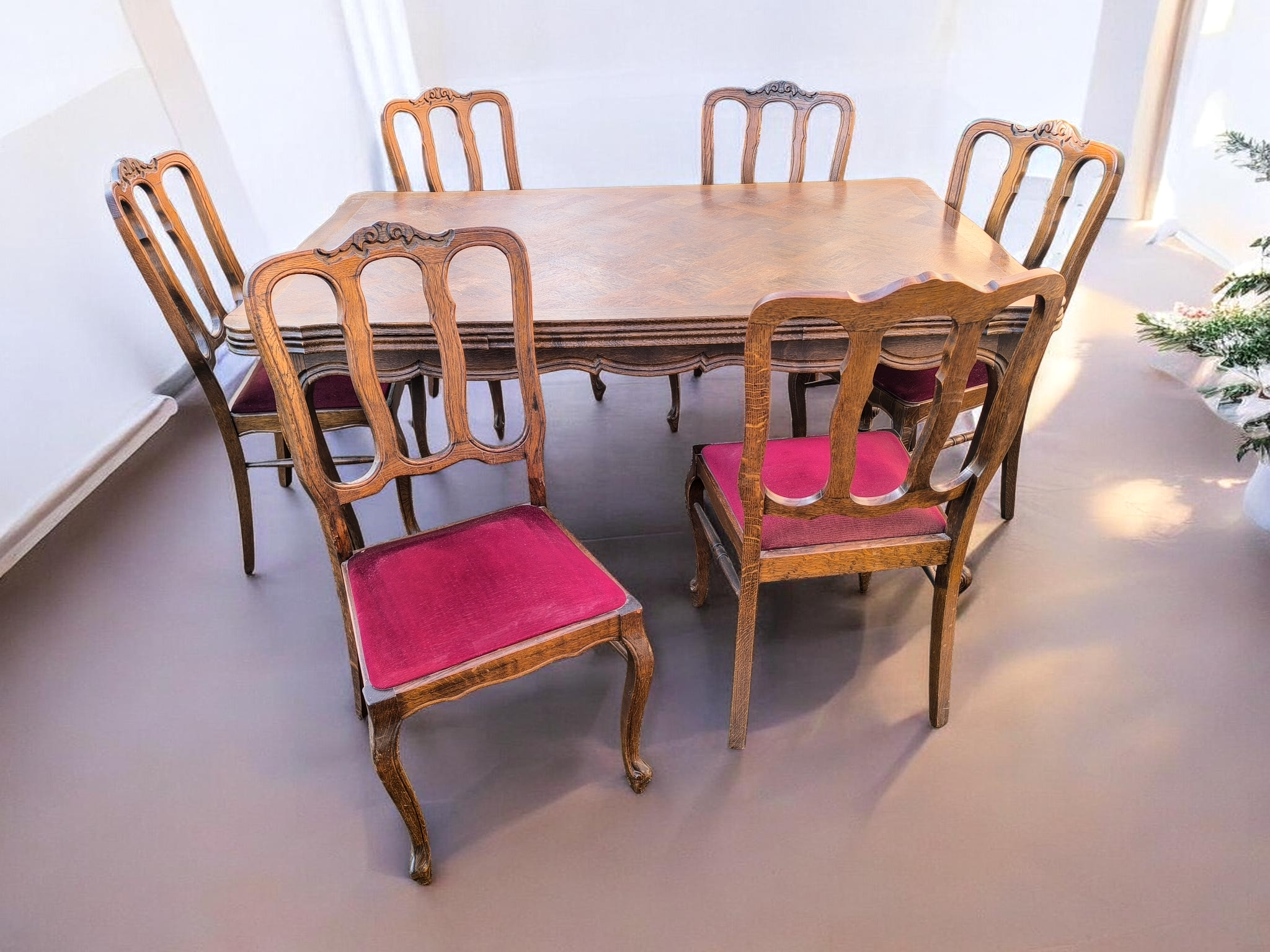 Eladó egy neobarokk étkező garnitúra szép állapotban. Kecses lábakkal, stabil szerkezettel, két oldalra hosszabbítható asztallappal. Hat darab kecses fa székkel,kárpitozott ülőlappal. Teljes egészében fából készült. A termékeink között hozzá illő vitrin,tálaló és egyéb bútorok is találhatóak.