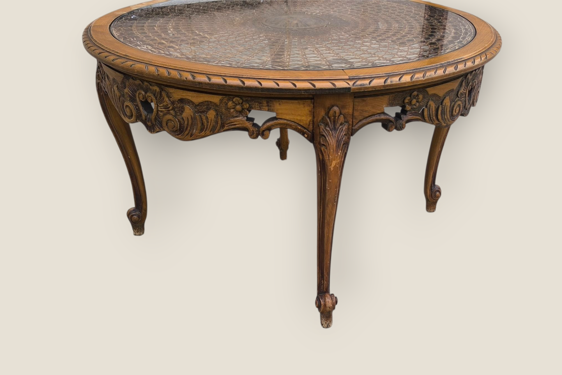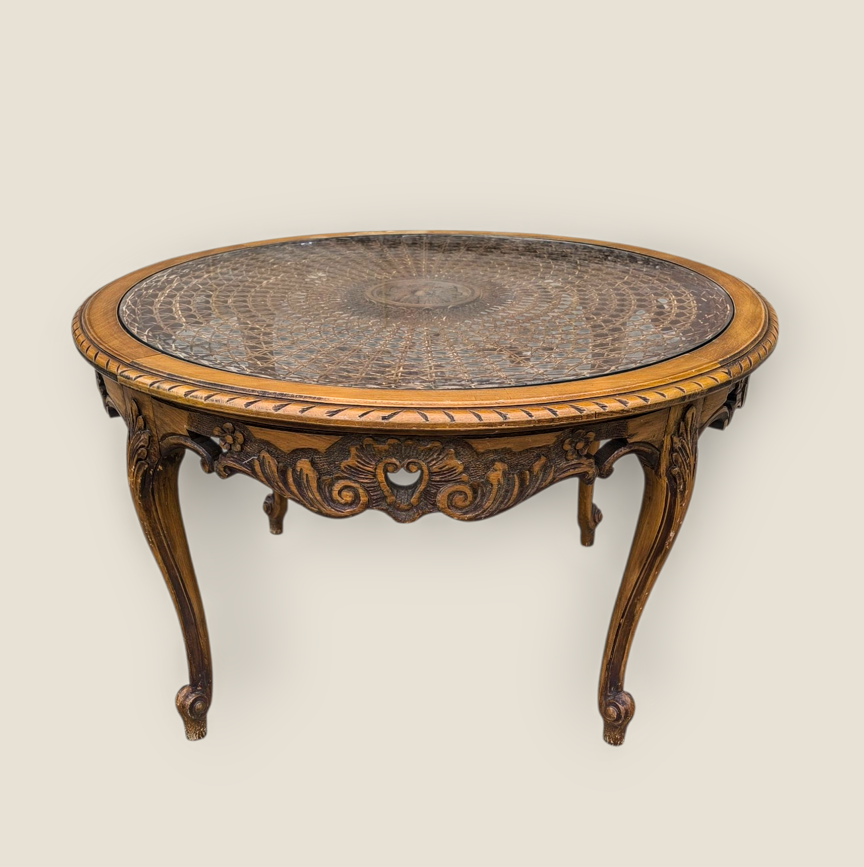Eladó egy neobarokk stílusú kerek formájú ,áttört faragású dohányzóasztal.