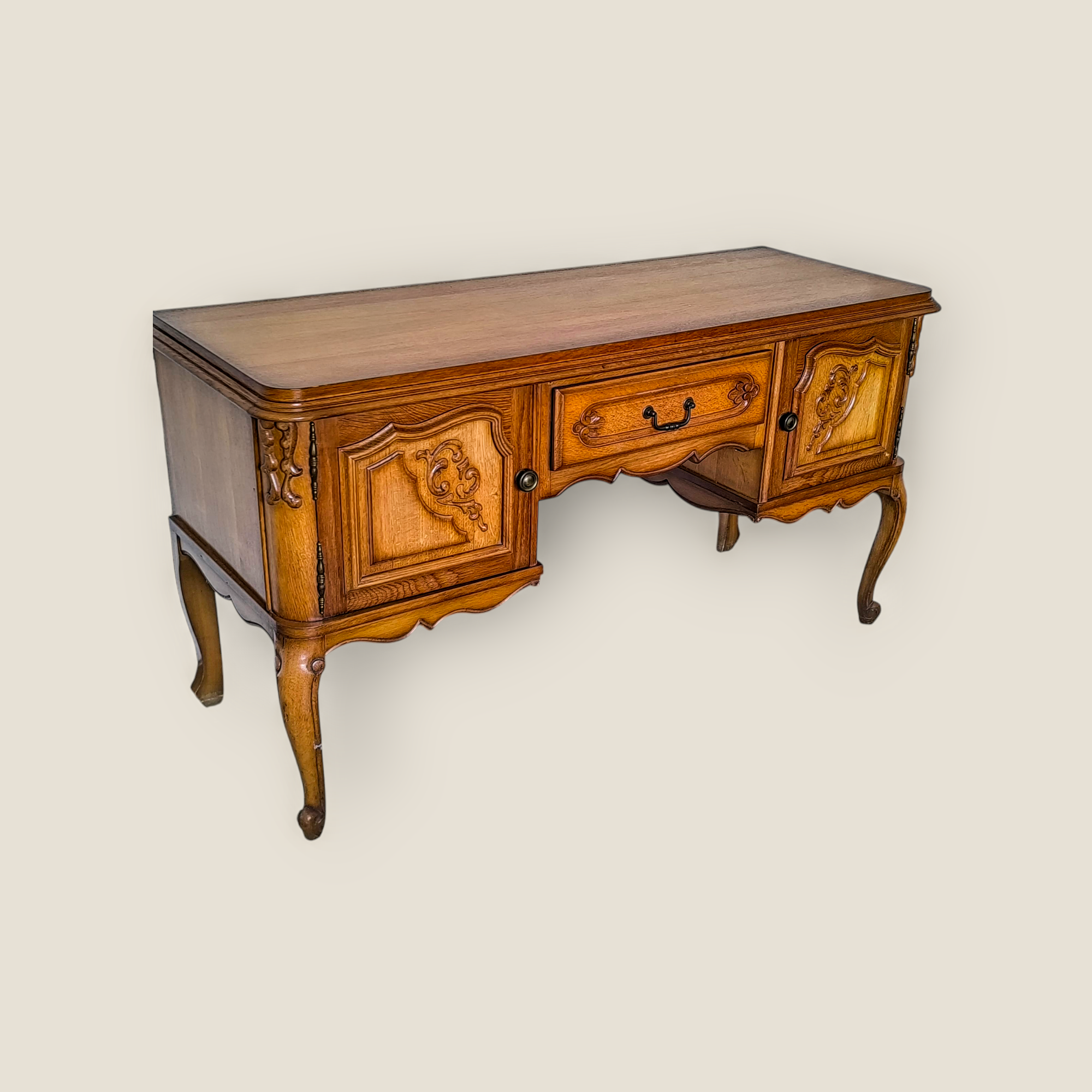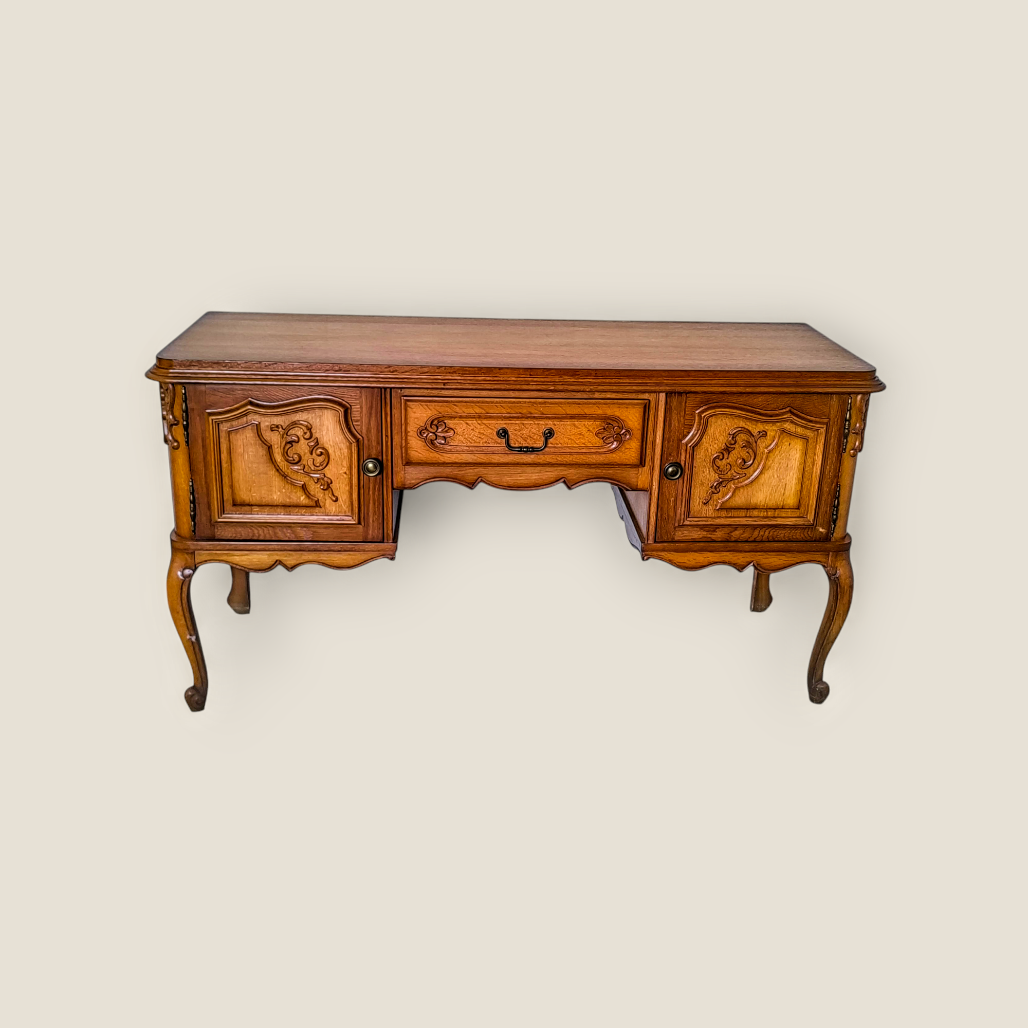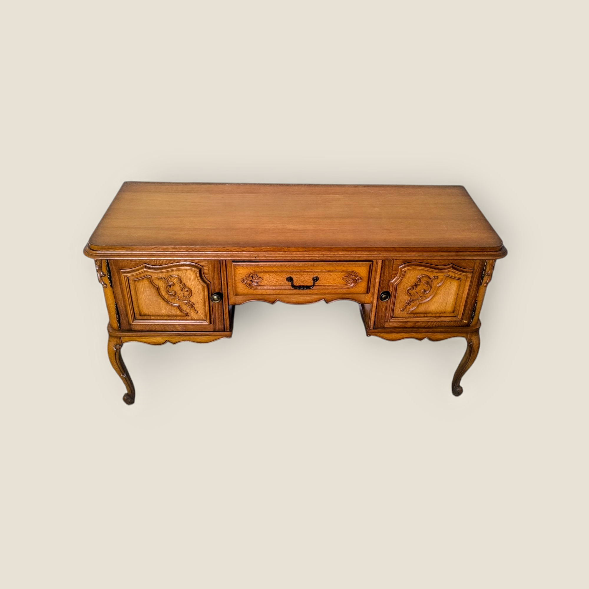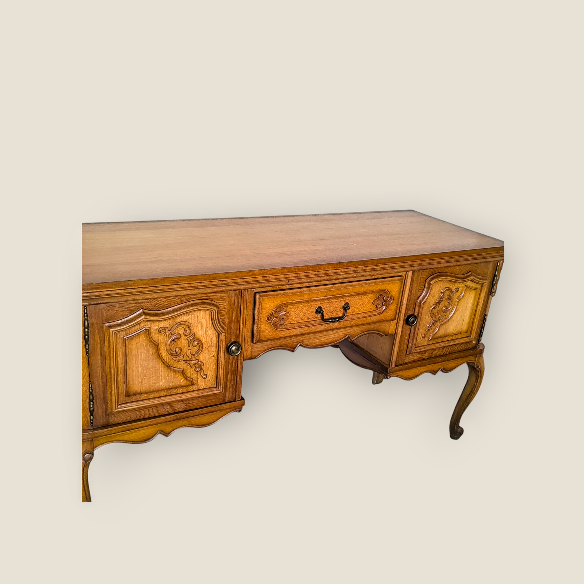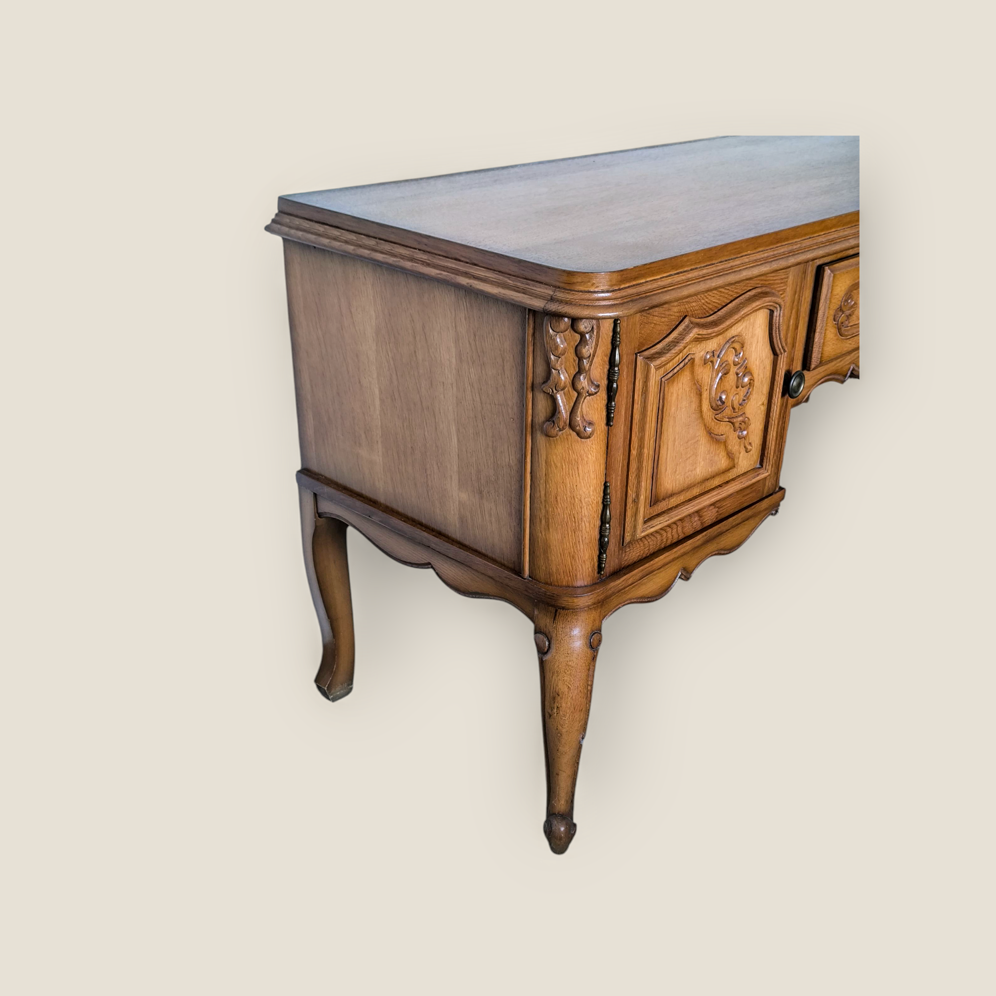 Eladásra kínálunk egy neobarokk stílusú kis íróasztalt vagy tv alá helyezhető hosszú komódot.