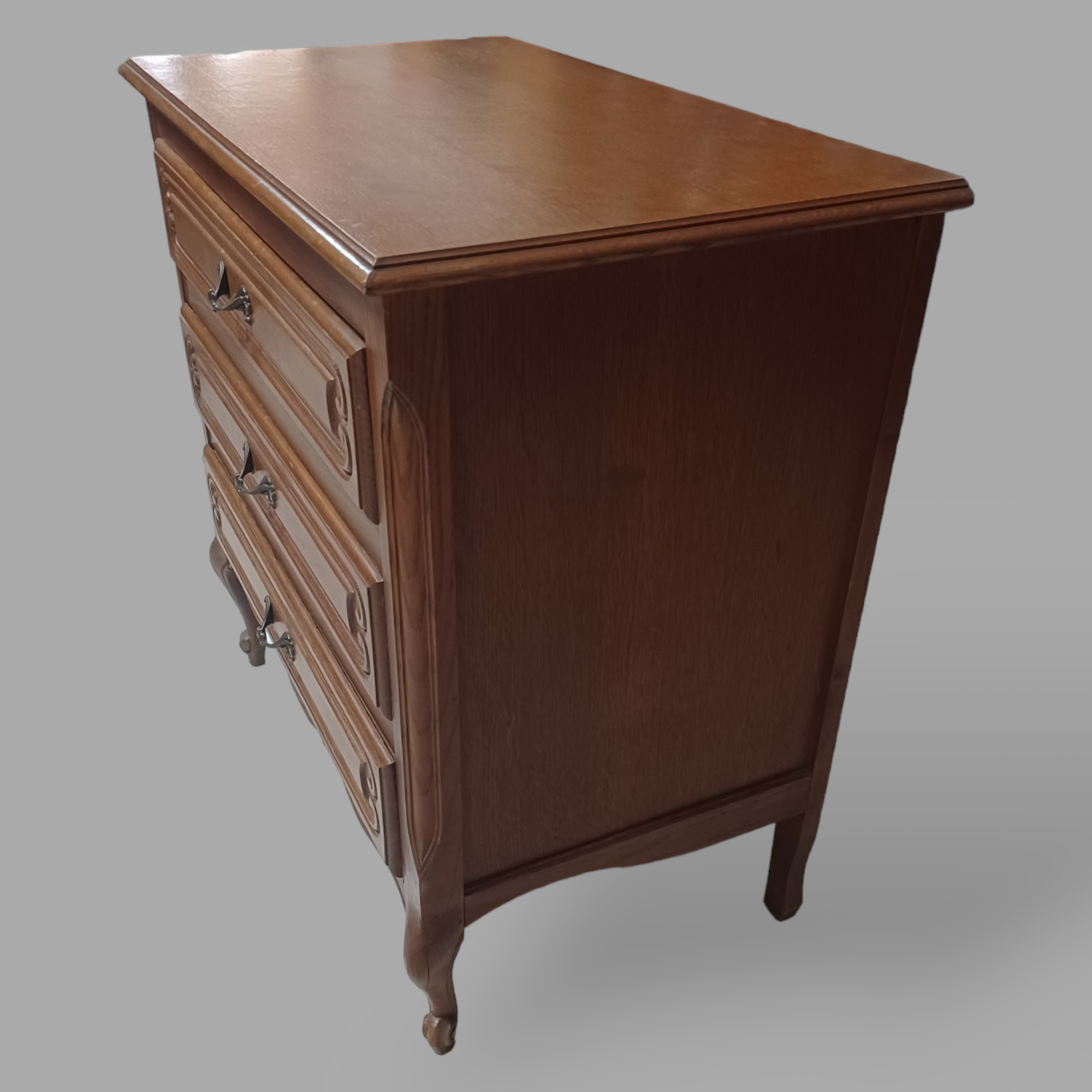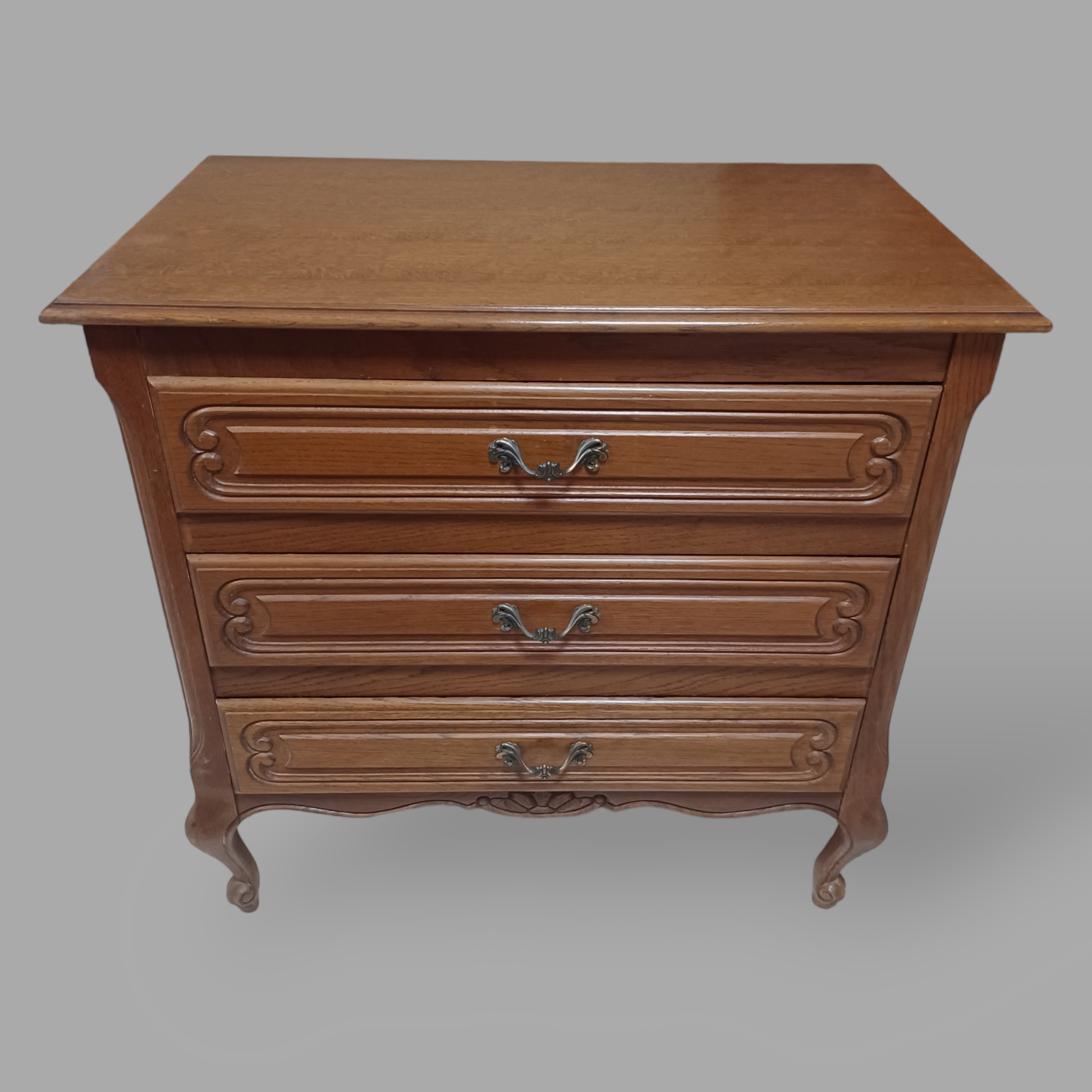 Eladó neobarokk fiókos komód szép állapotban. Három fiókos kivitel, kecses lábakkal, díszes fiókokkal az elején. Különleges darab, igény esetén hozzá tartozó egyéb bútorokat is tudok ajánlani.