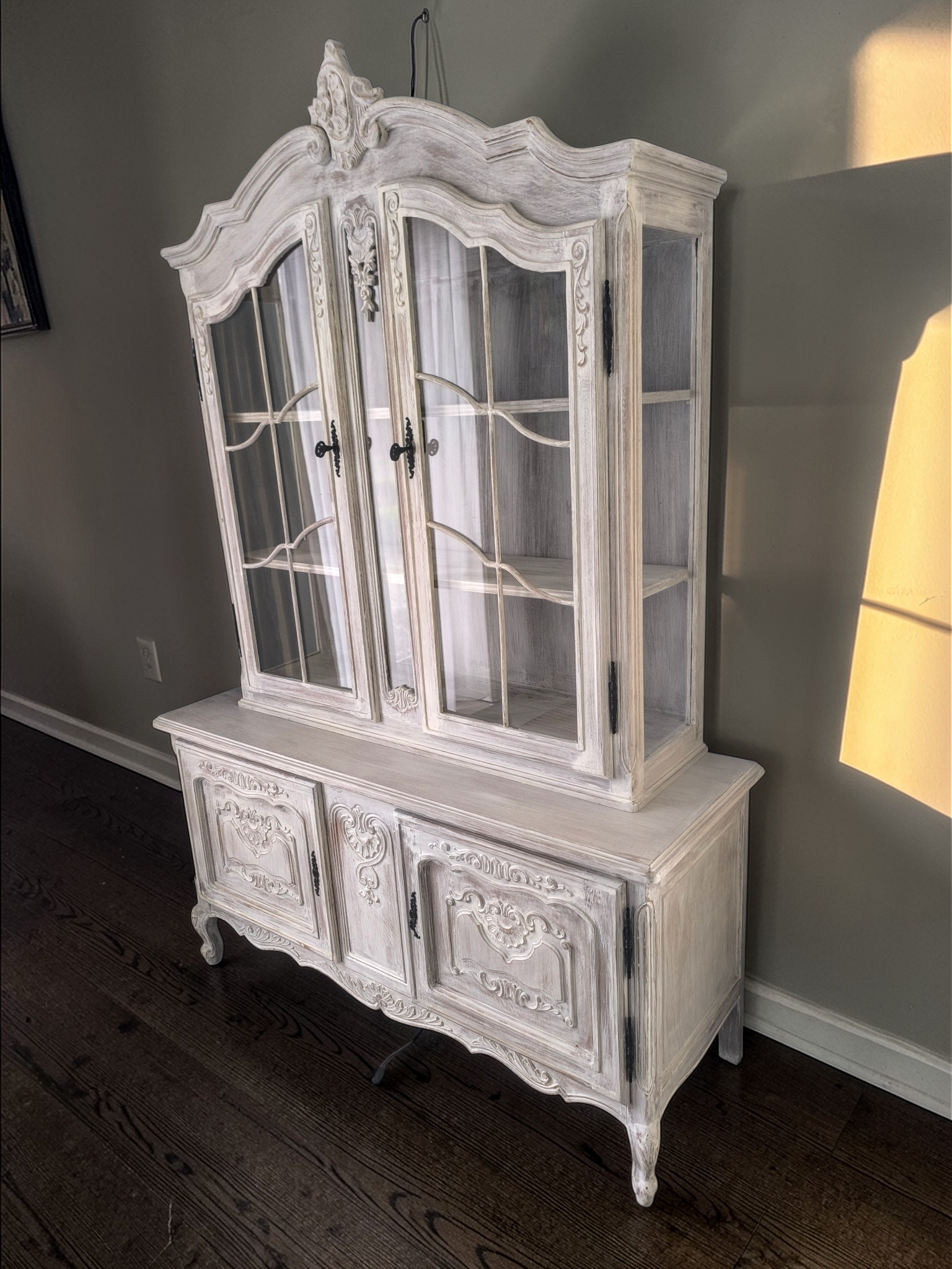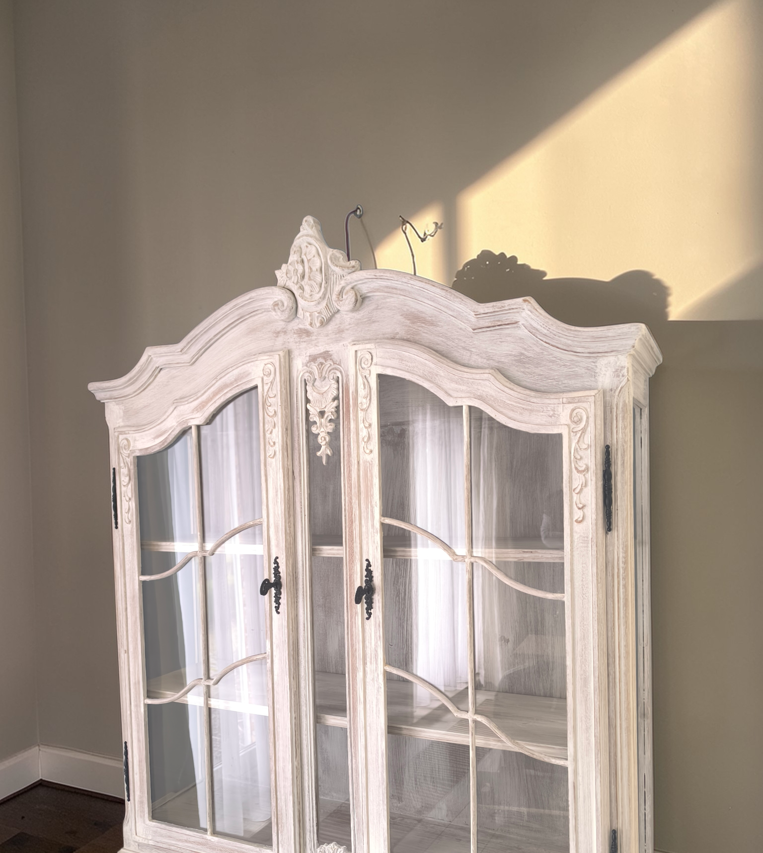 Eladó egy neobarokk provence stílusú teli üveges vitrin .