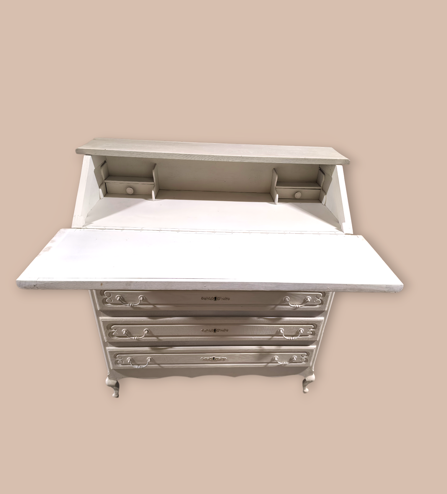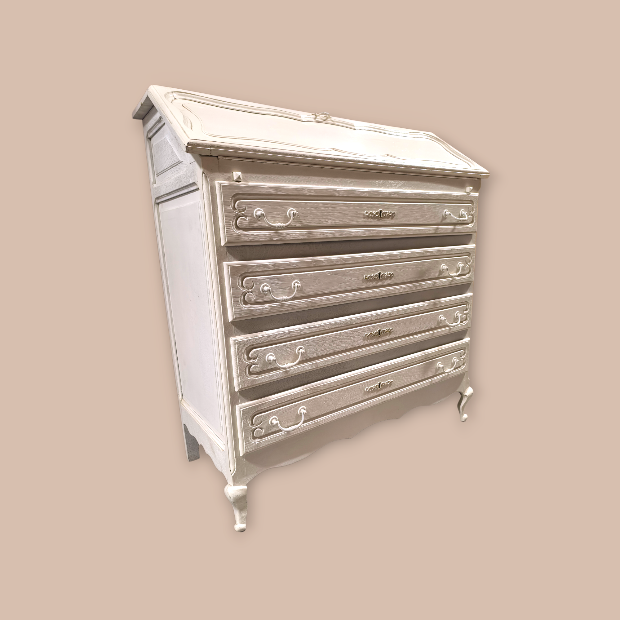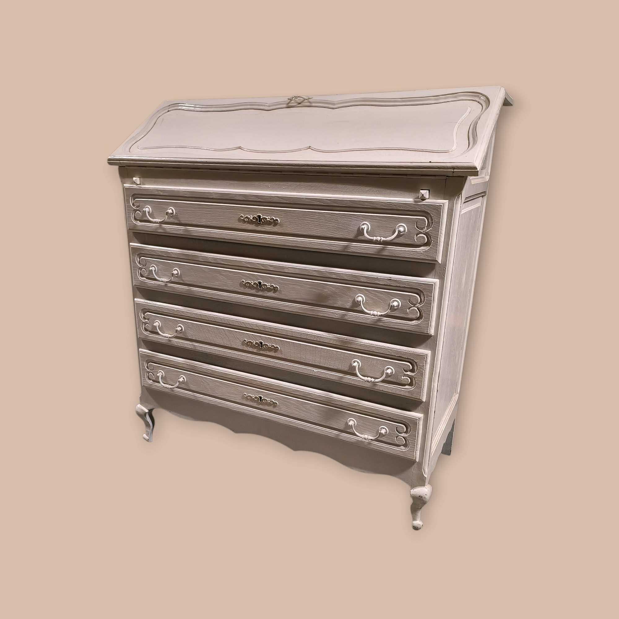 Eladó egy neobarokk stílusú 4 fiókos ,festett szekreter . Kecses ívelt lábakkal, alul 4 db fiókkal. Belül apróbb tároló rekesszel.