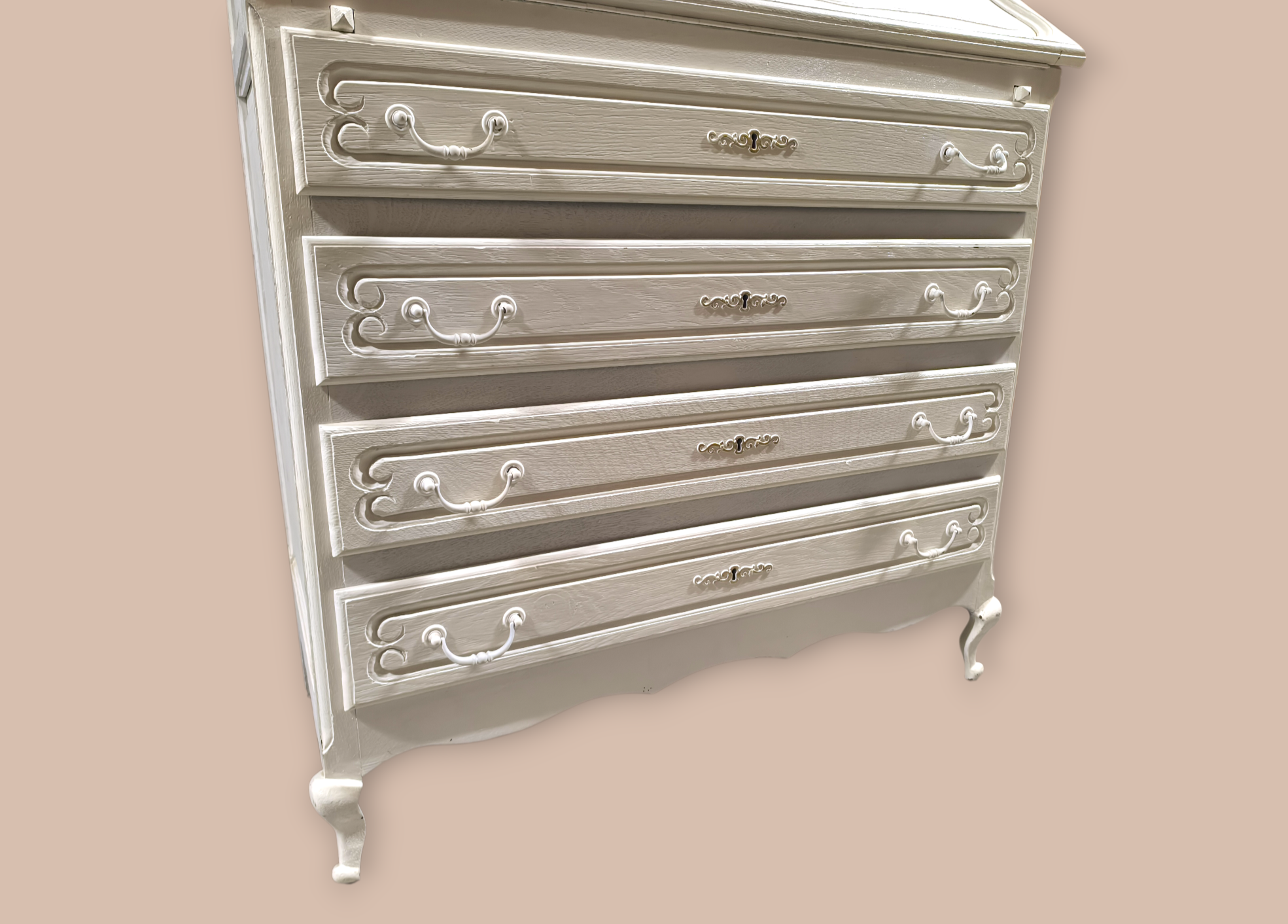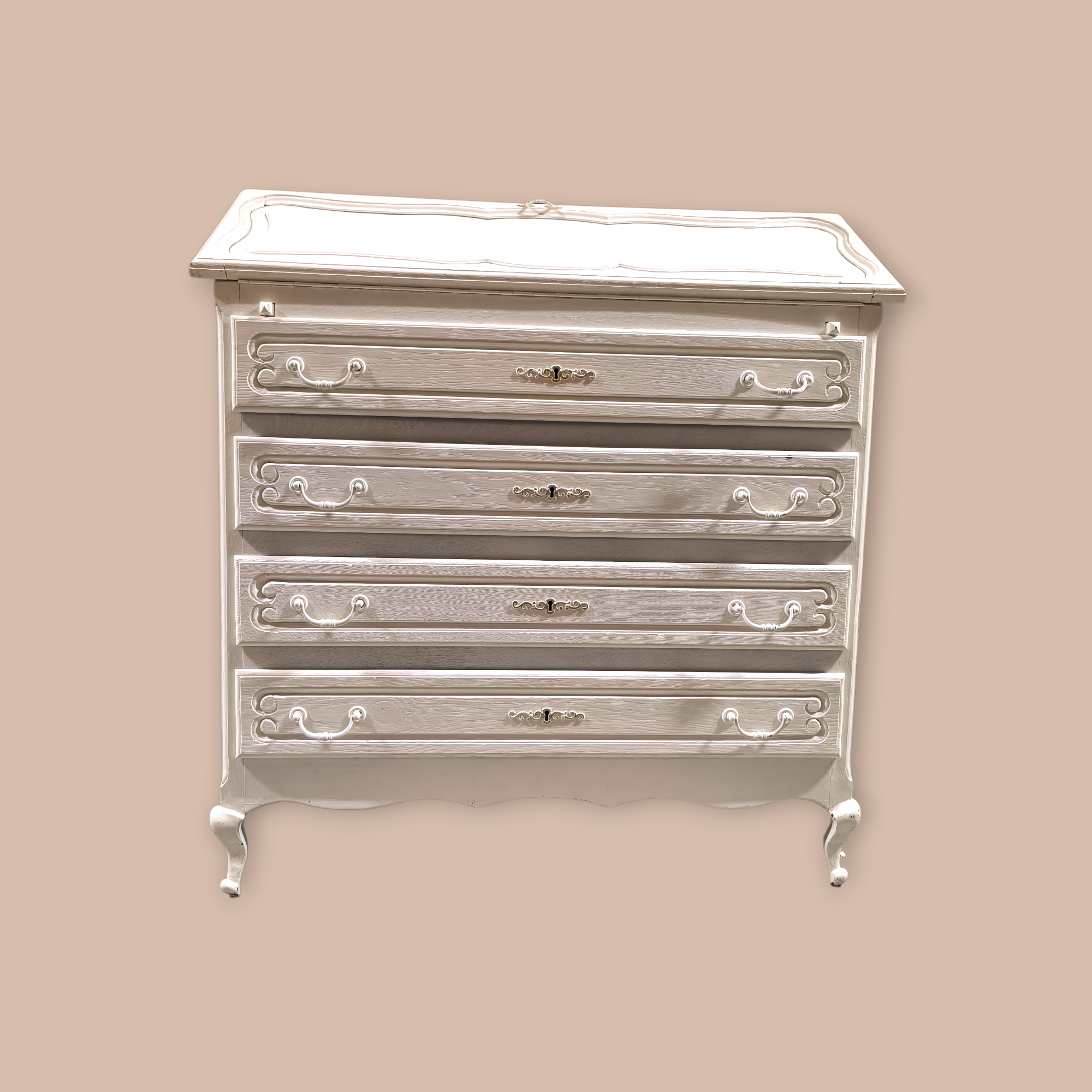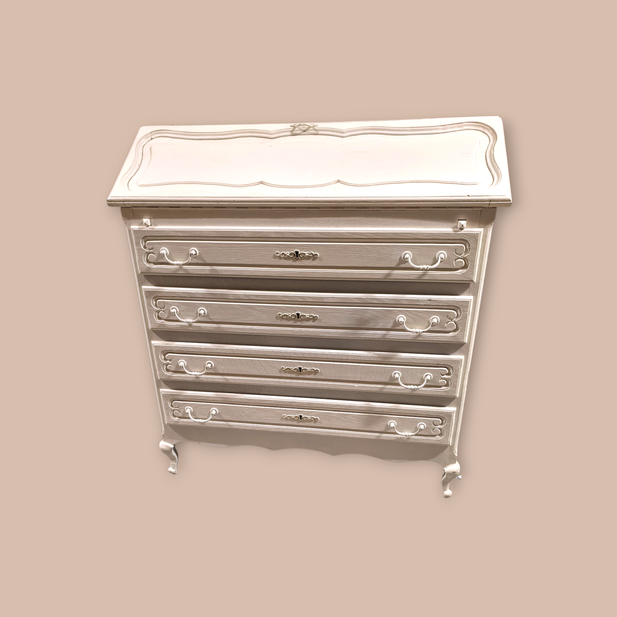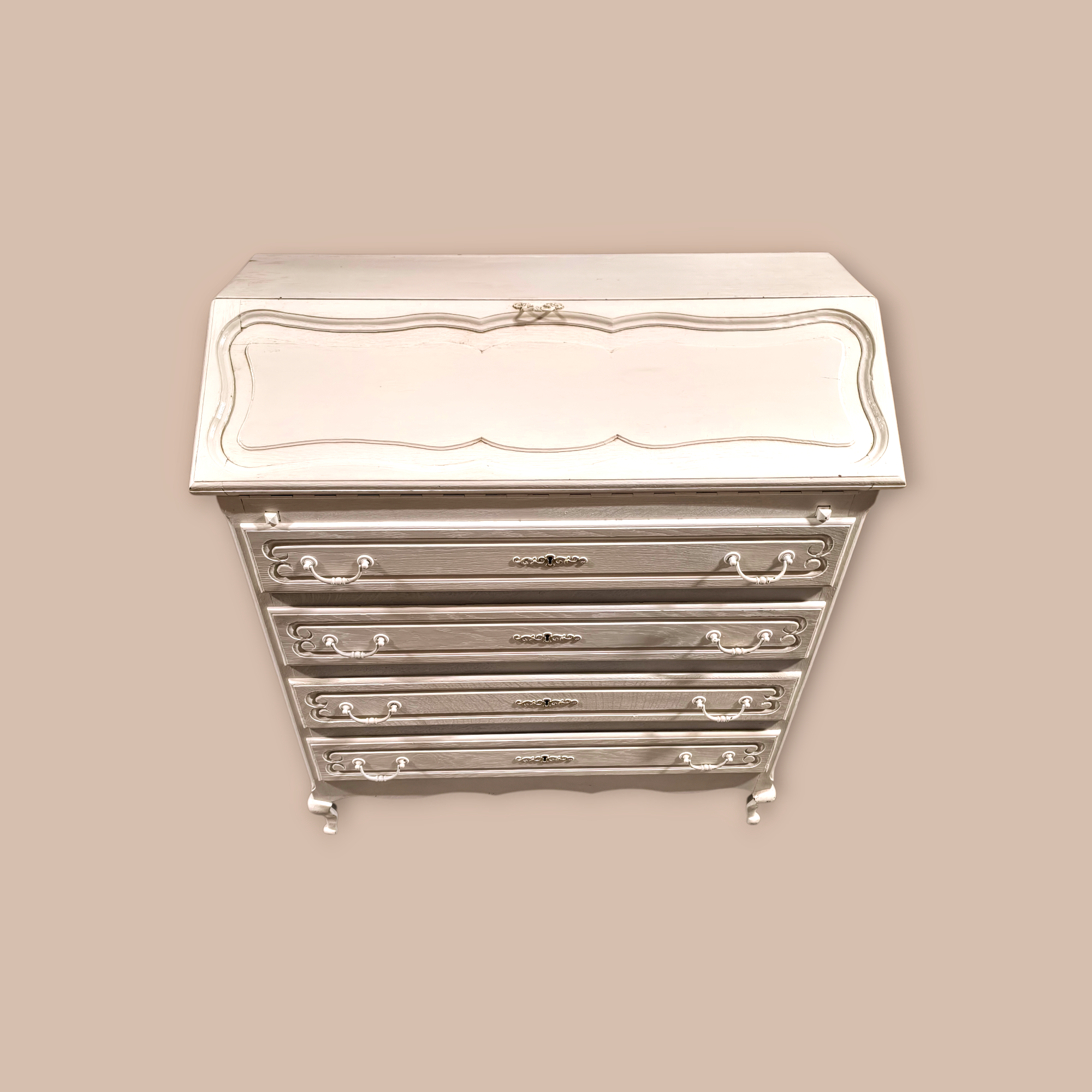 Eladó egy neobarokk stílusú 4 fiókos ,festett szekreter . Kecses ívelt lábakkal, alul 4 db fiókkal. Belül apróbb tároló rekesszel.