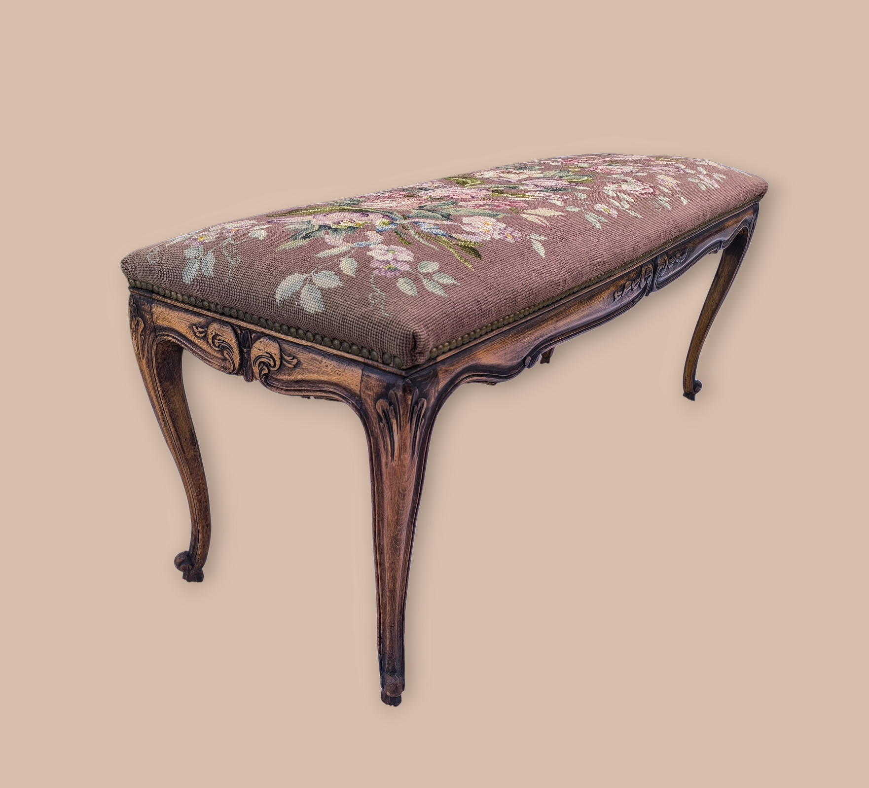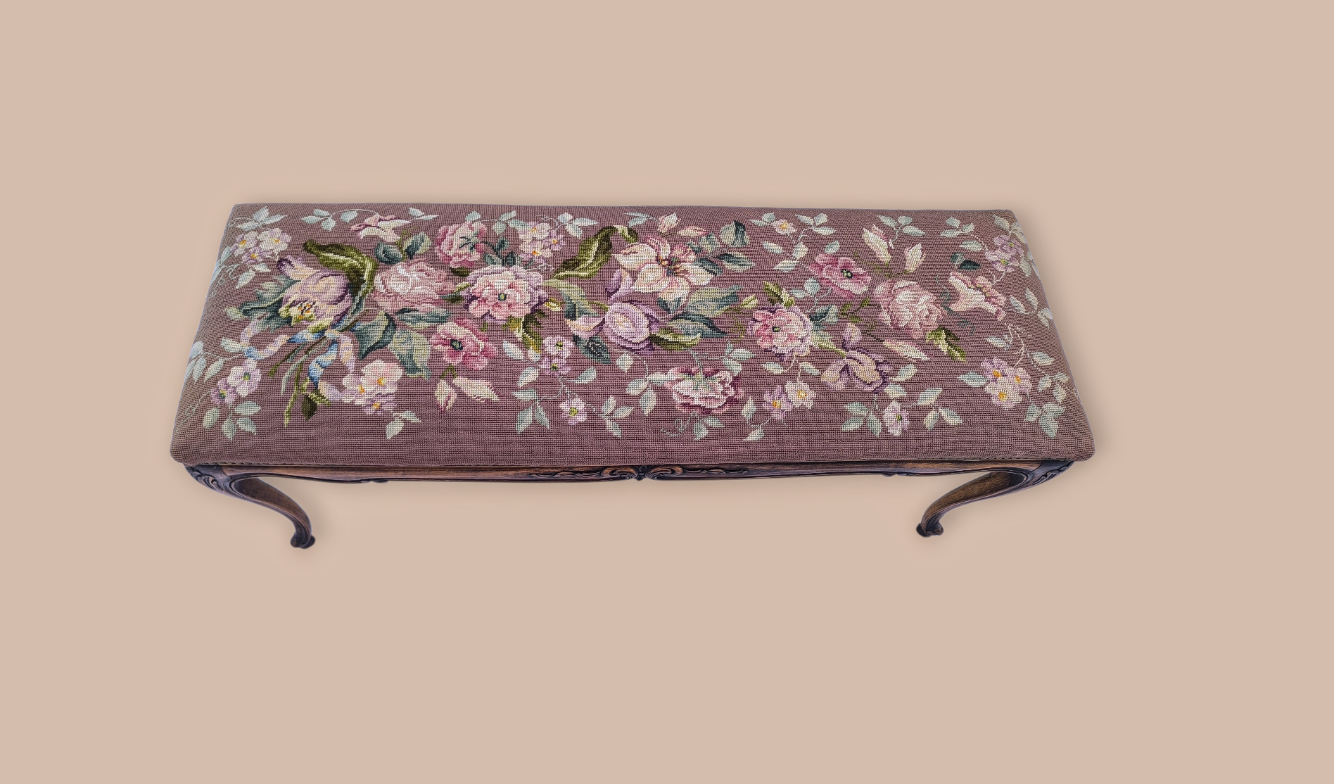 Neobarokk stílusú nagy méretű gobelines lábtartó,zsámoly