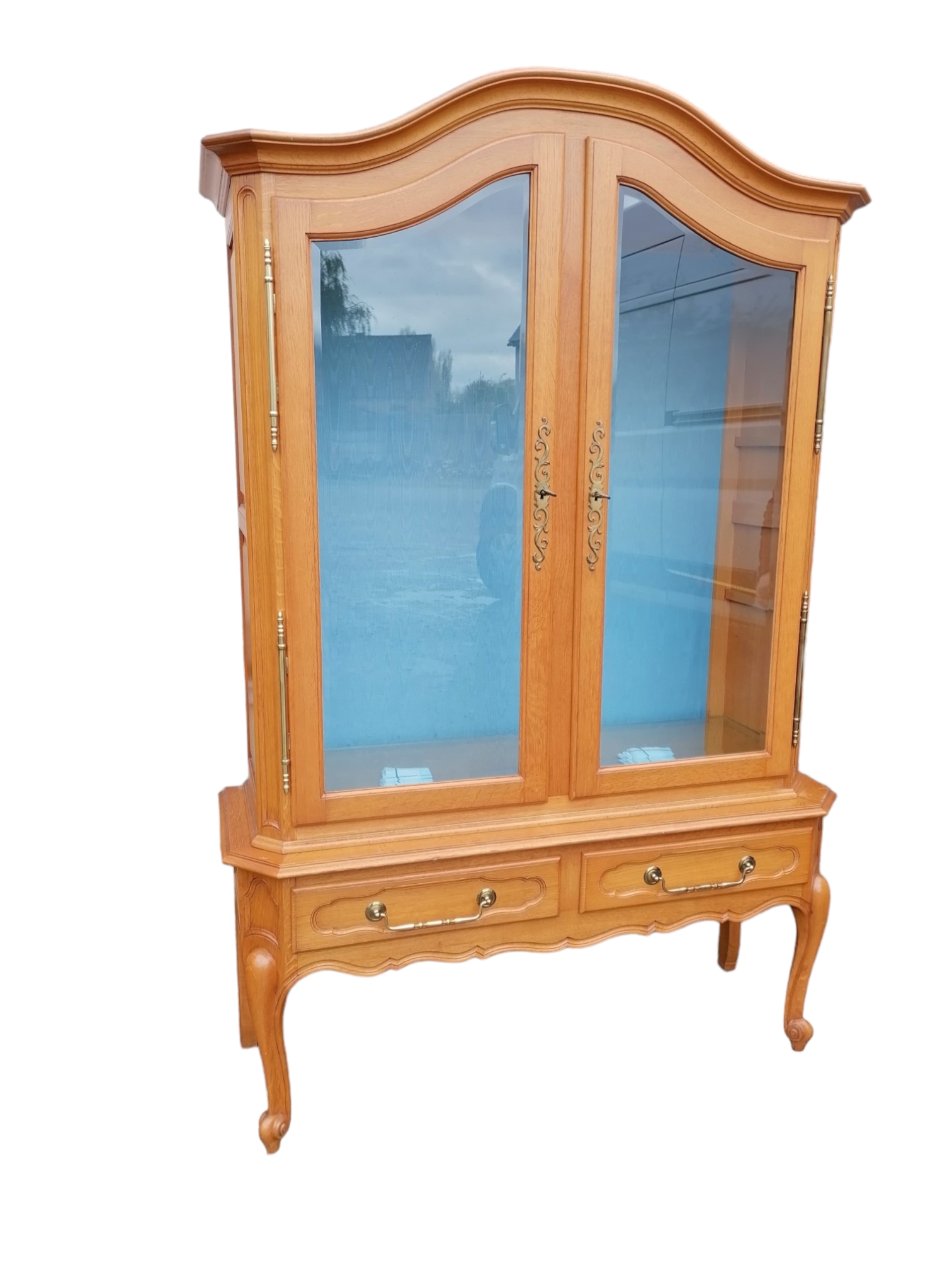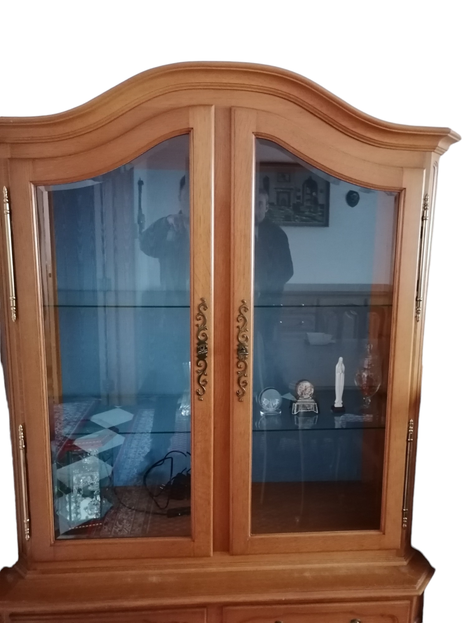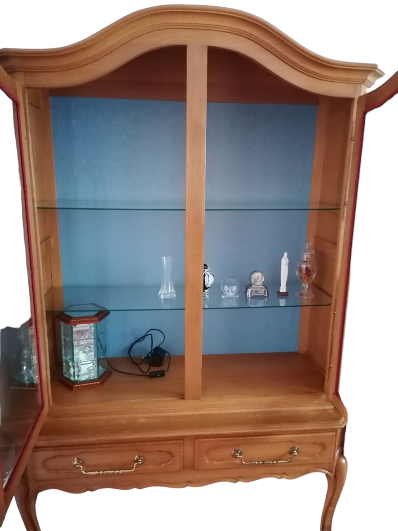 Eladásra kínálunk egy neobarokk üvegpolcos vitrint.