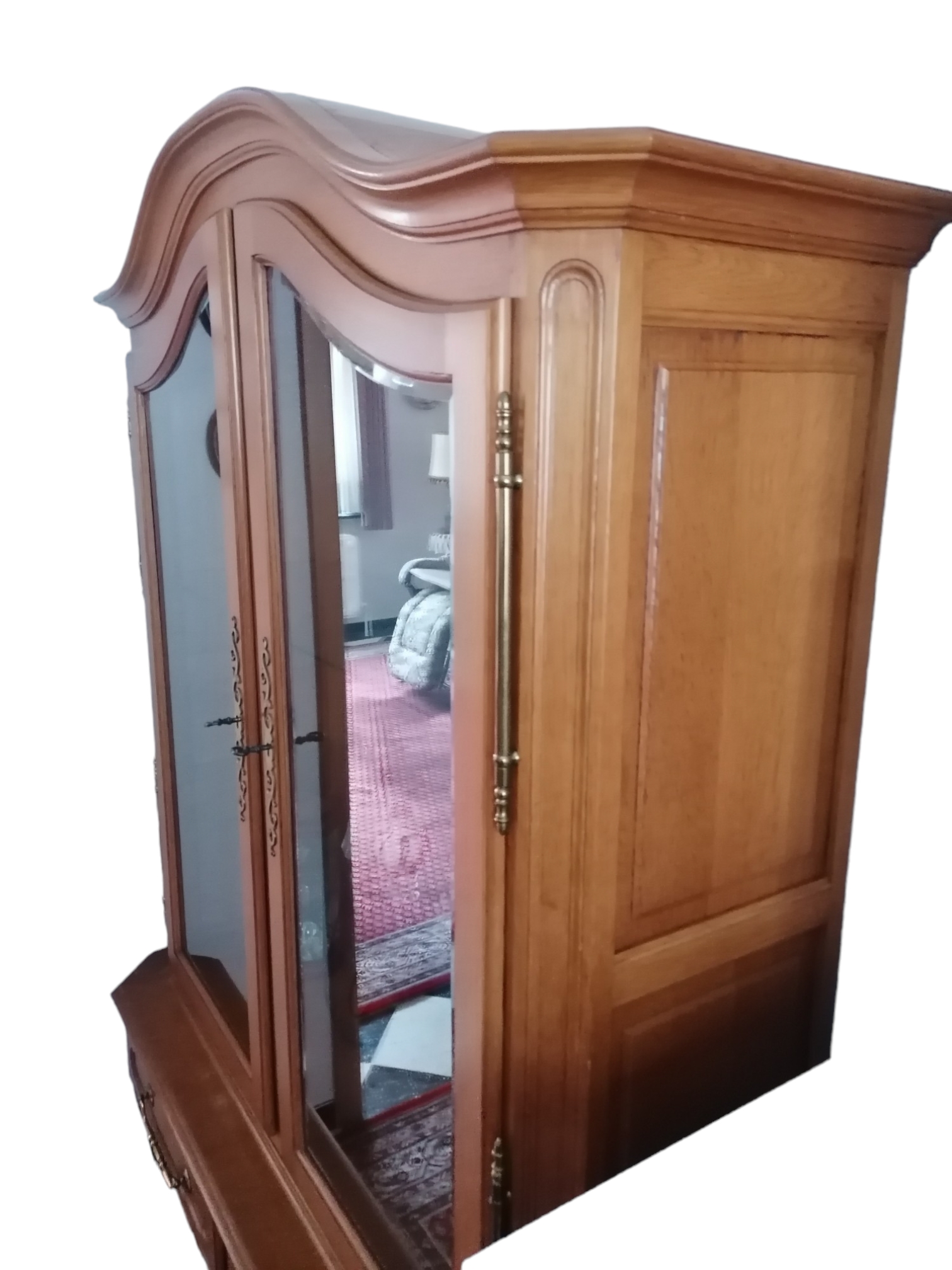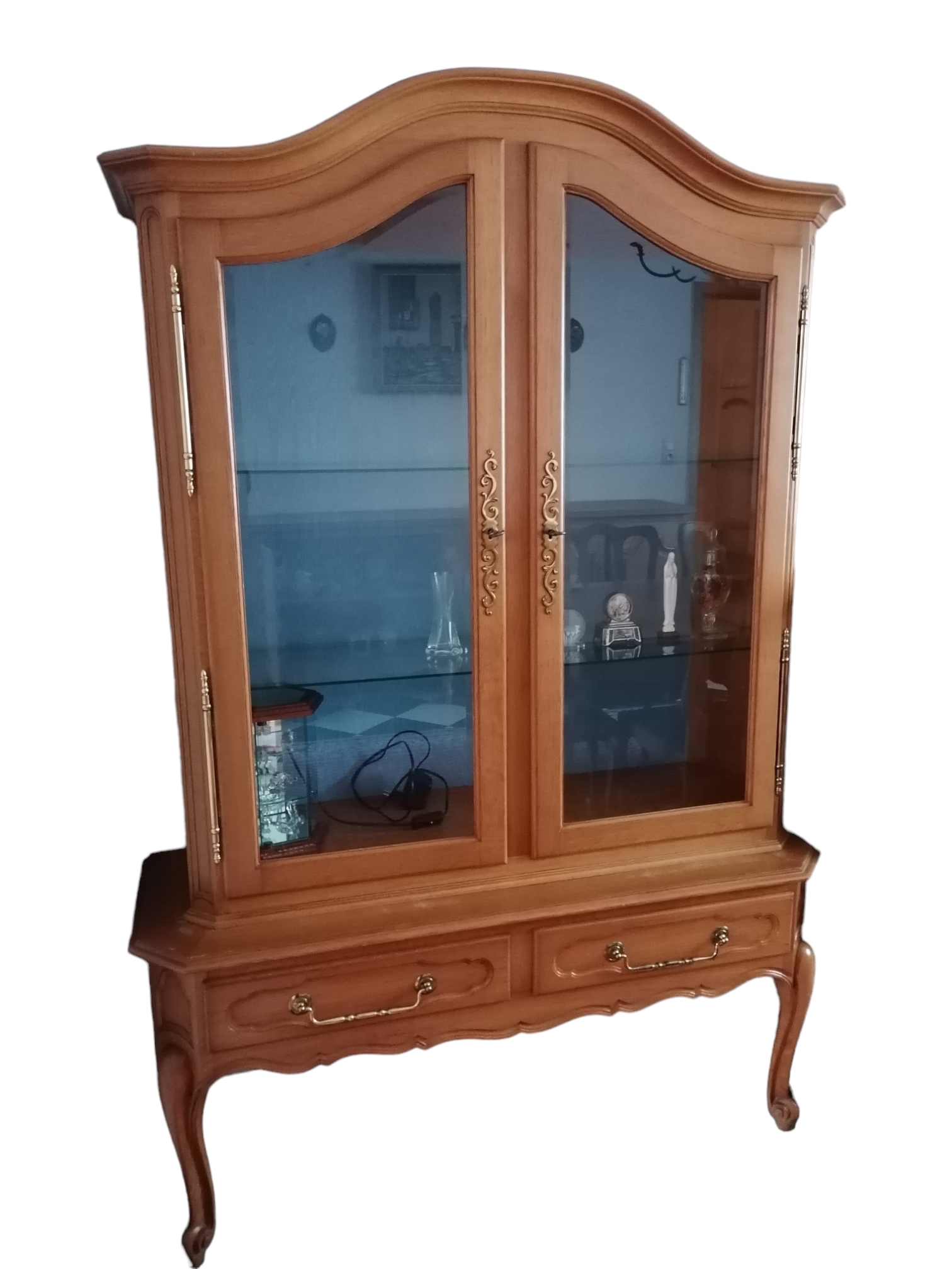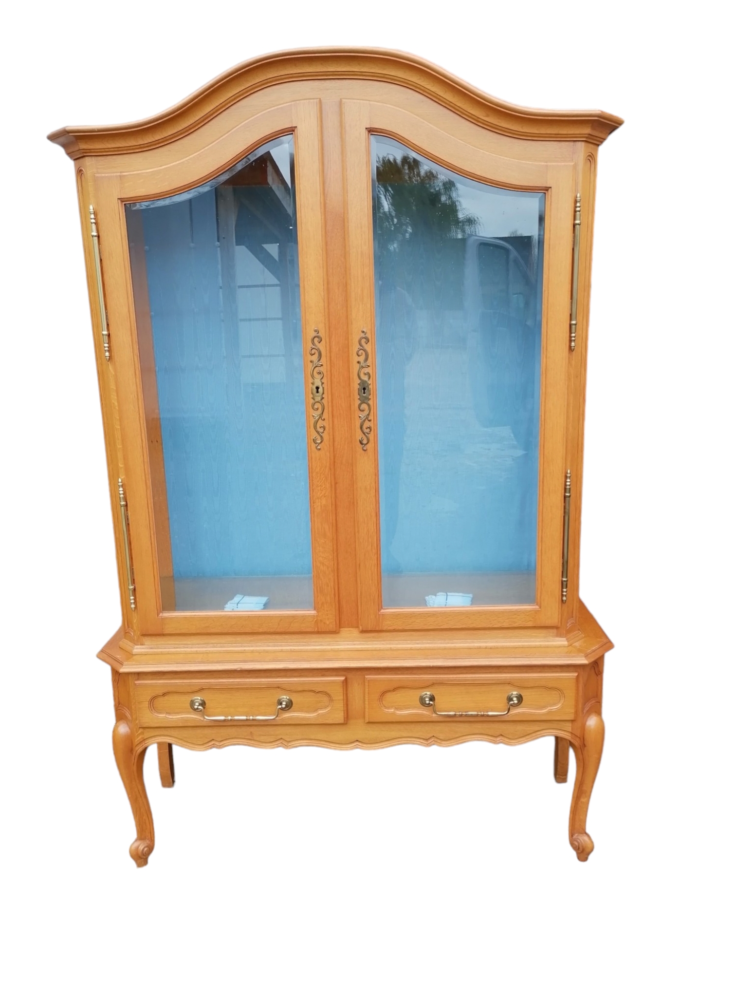Eladásra kínálunk egy neobarokk üvegpolcos vitrint.