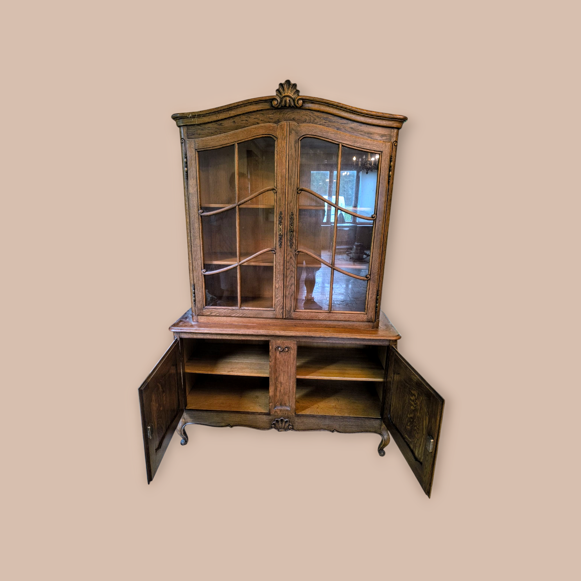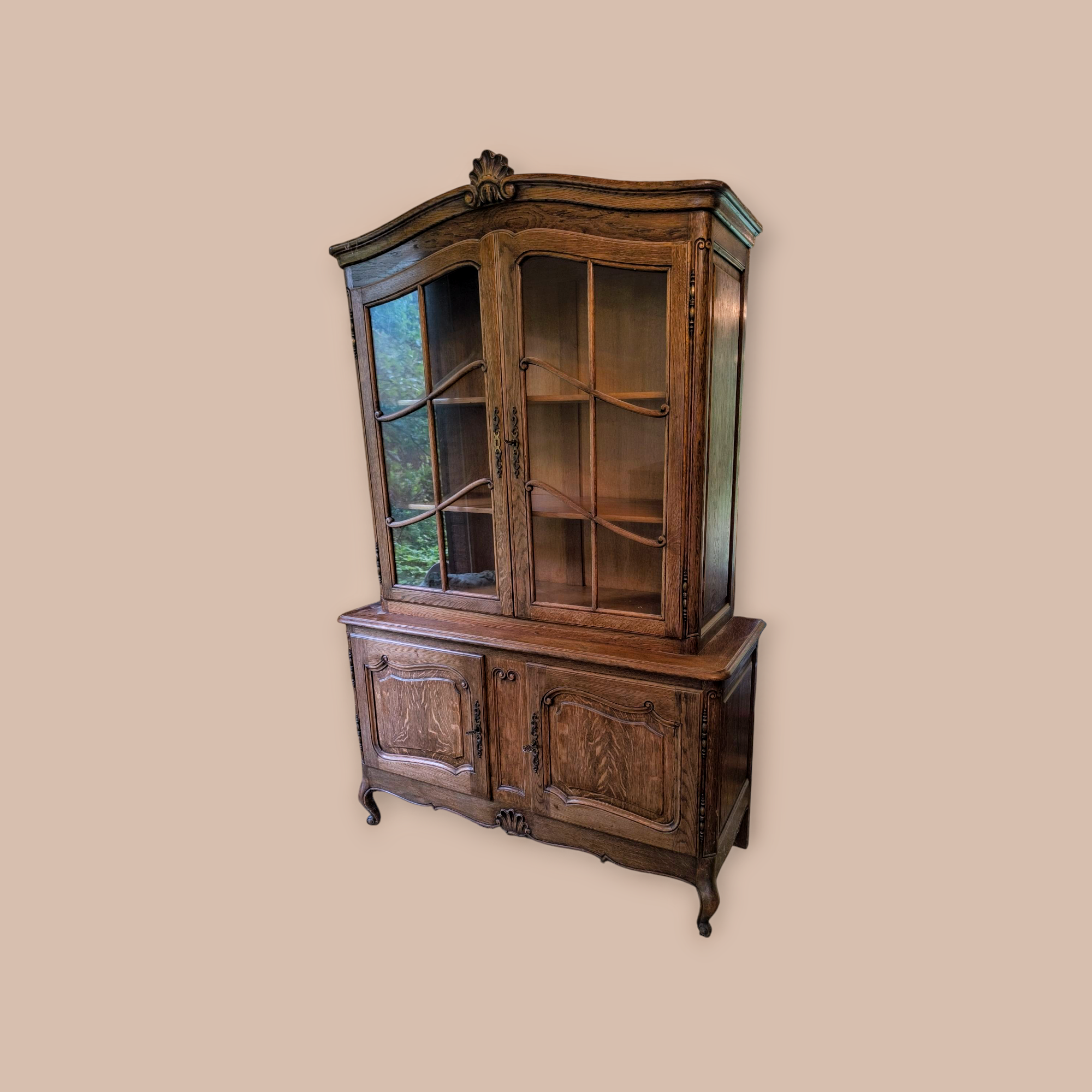 Eladó neobarokk vitrin szép állapotban. Alul 2 ajtós, díszes faragásokkal kecses lábakkal. Felül üveges vitrinnel. Igény esetén hozzá tartozó tálaló komódot vagy étkező garnitúrát is tudunk ajánlani.