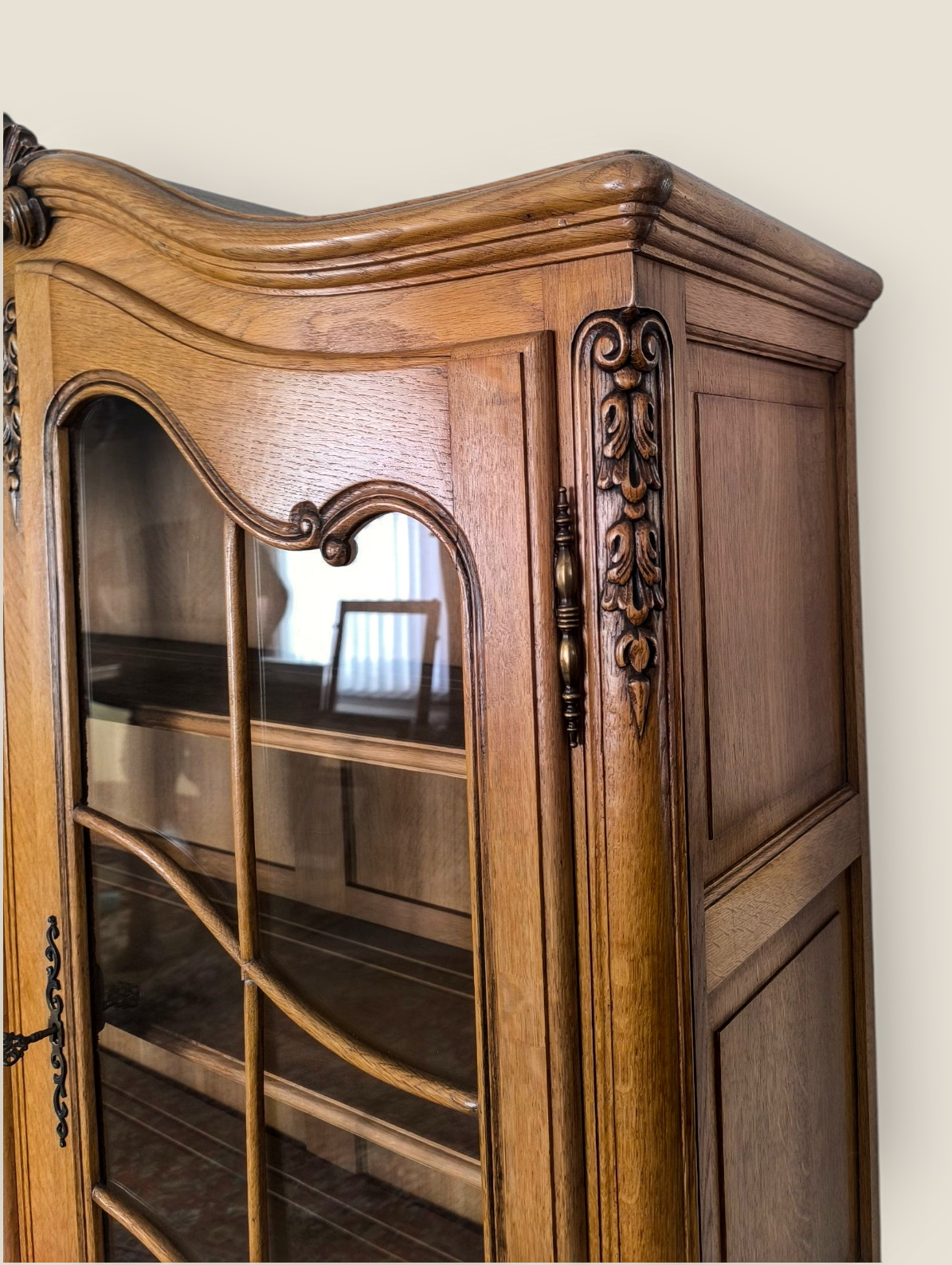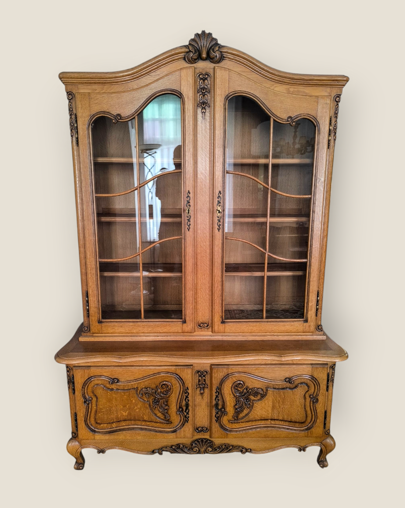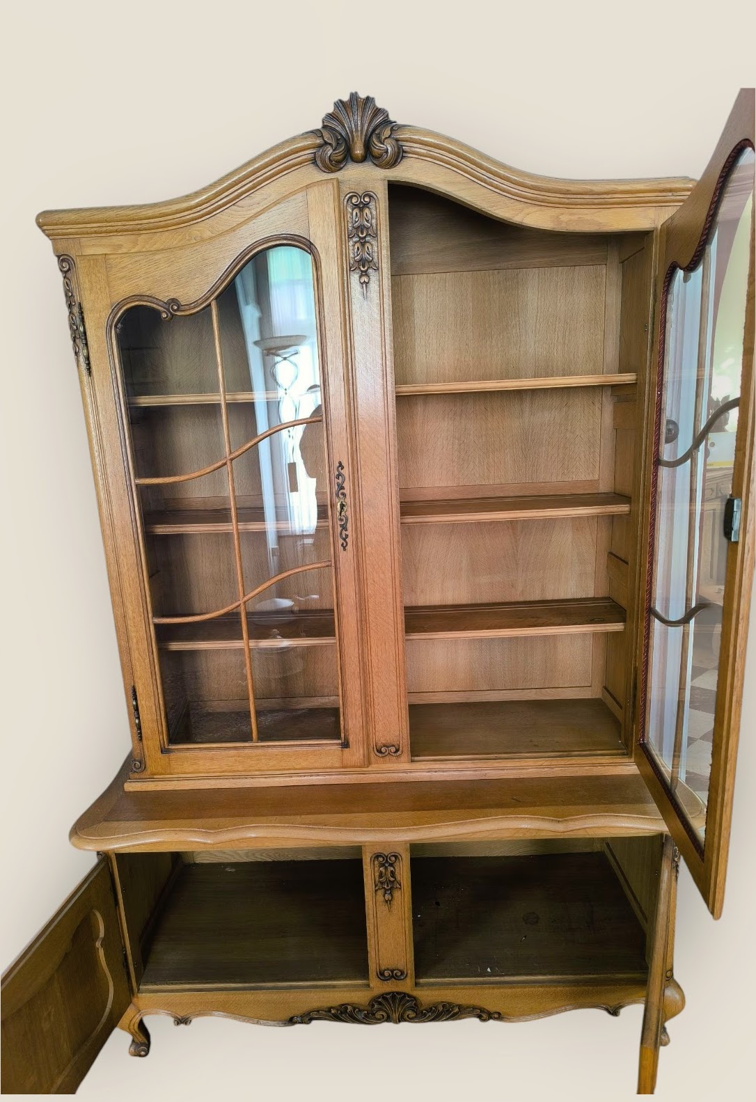 Eladó neobarokk vitrin szép állapotban. Alul 2 ajtós, díszes faragásokkal kecses lábakkal. Felül üveges vitrinnel. Igény esetén hozzá tartozó tálaló komódot vagy étkező garnitúrát is tudunk ajánlani.