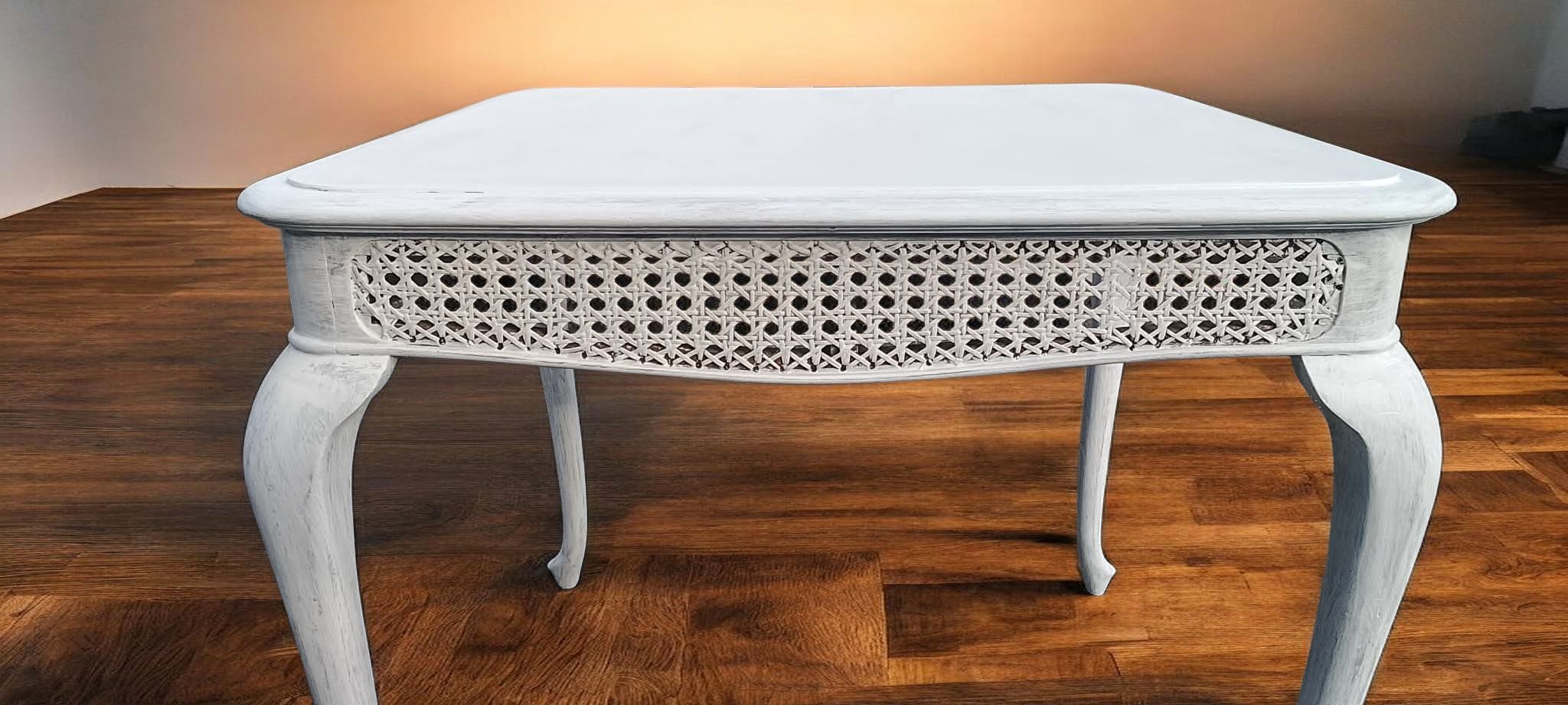 Provence stílusban felújított neobarokk dohányzóasztal.