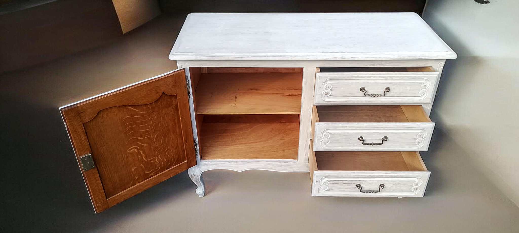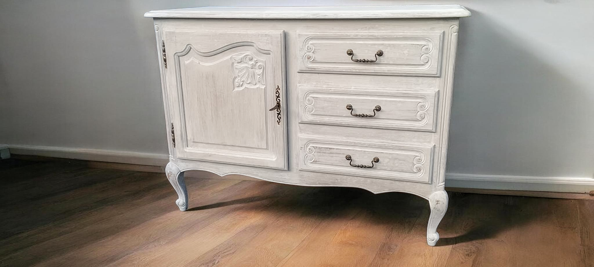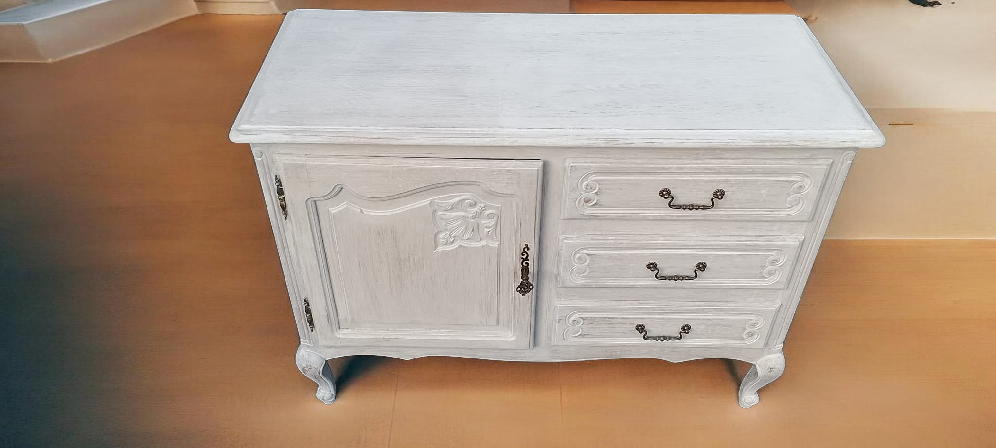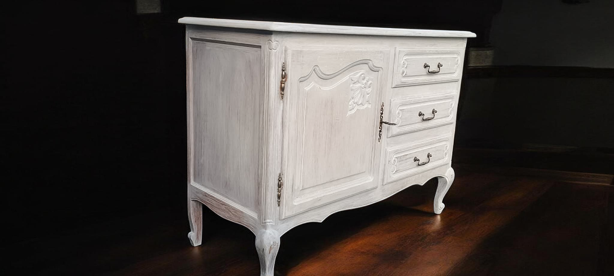 Eladásra kínálunk egy provence stílusban felújított neobarokk komódot.