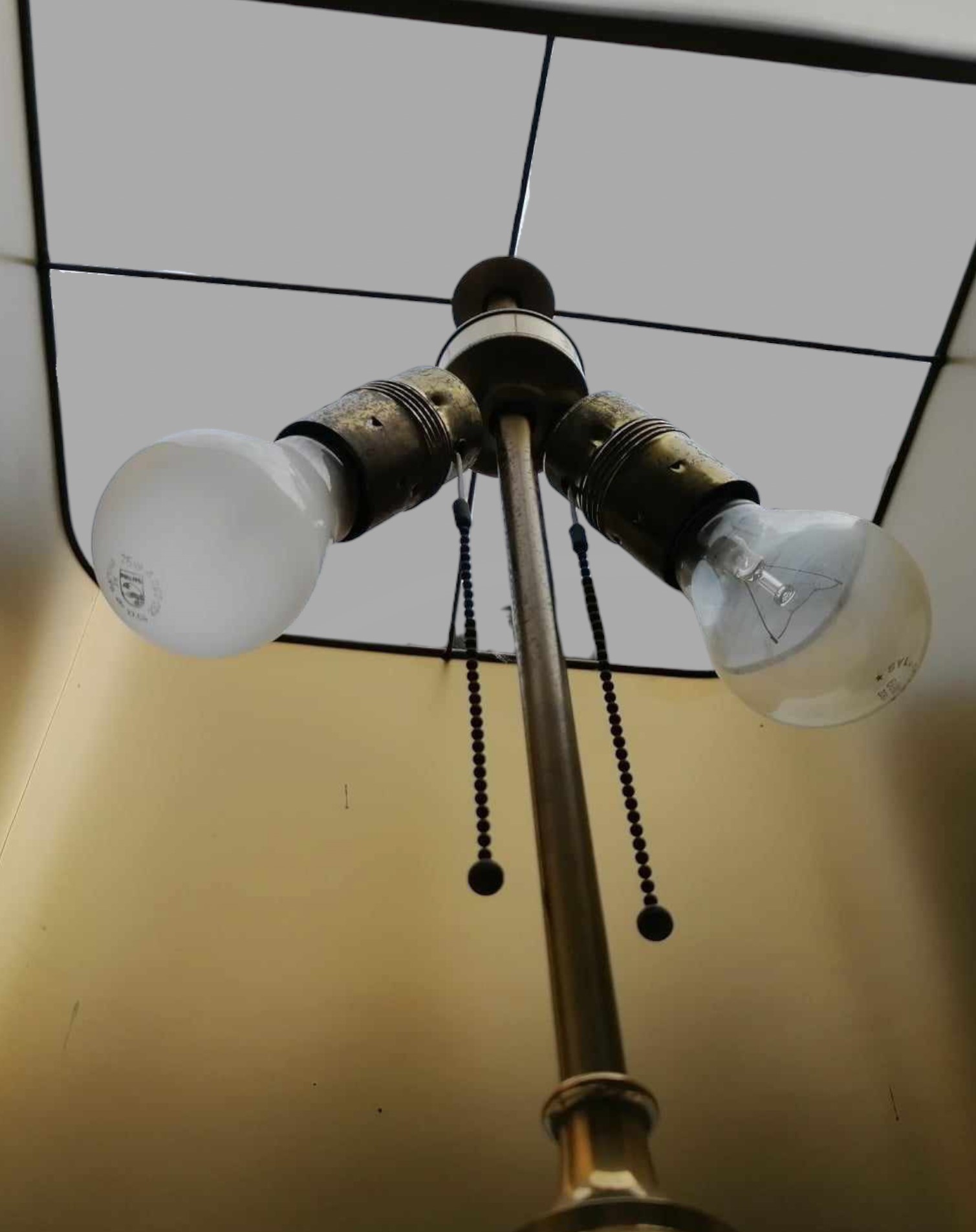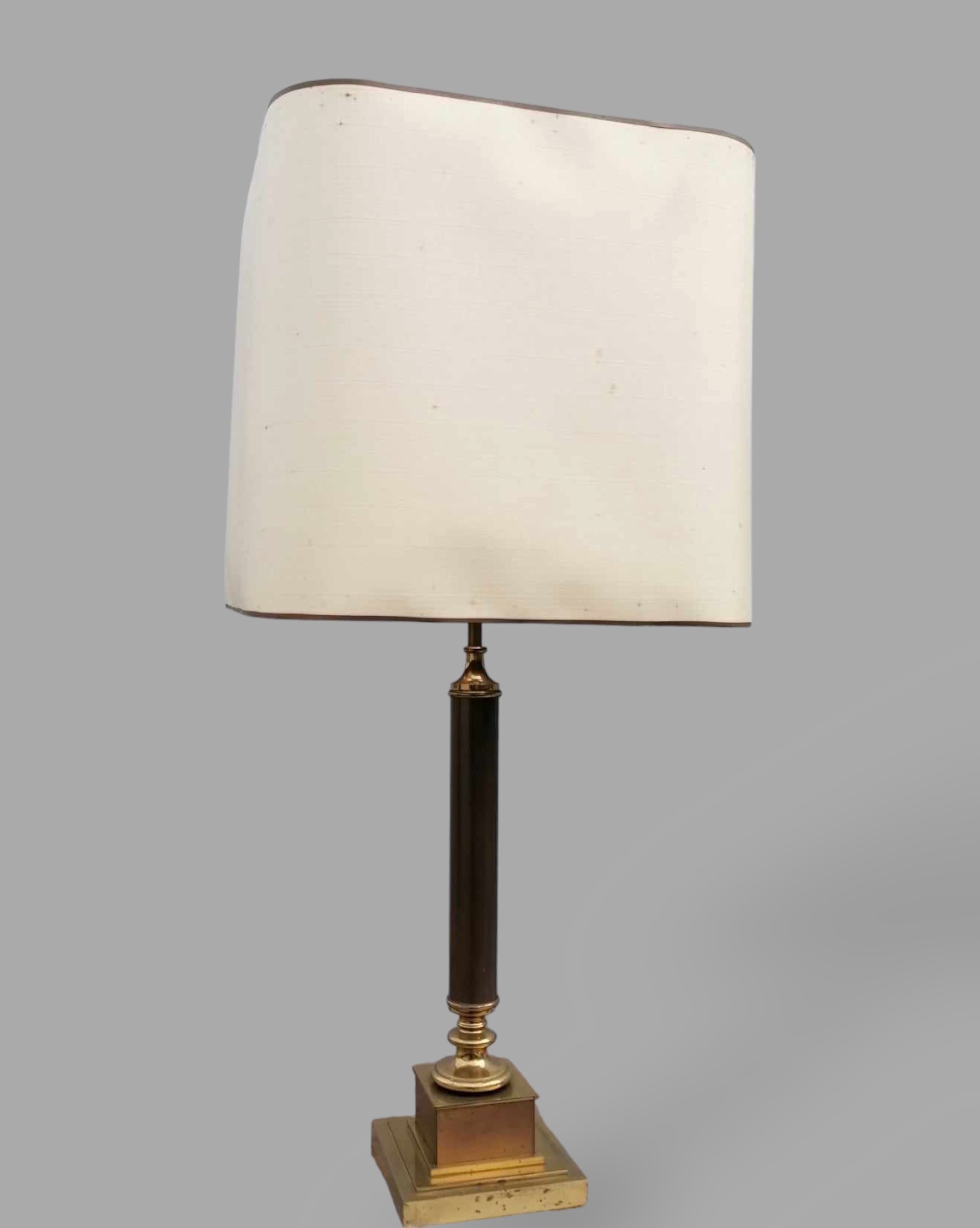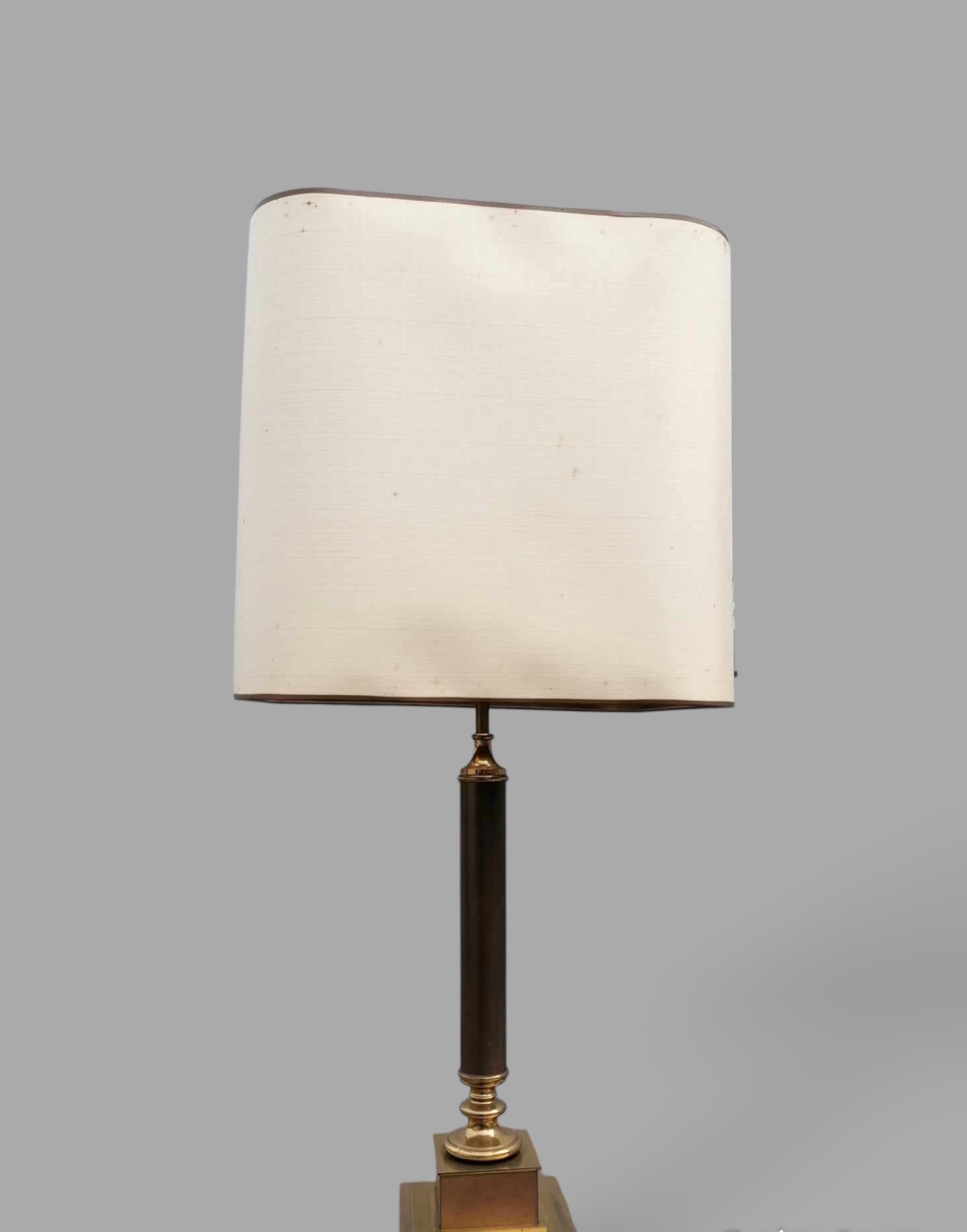 Eladó asztali lámpa szép állapotban. Rézből készült a talpa, letisztult de mégis elegáns designnal. Búra szintén ezt tükrözi, amely világos színű.