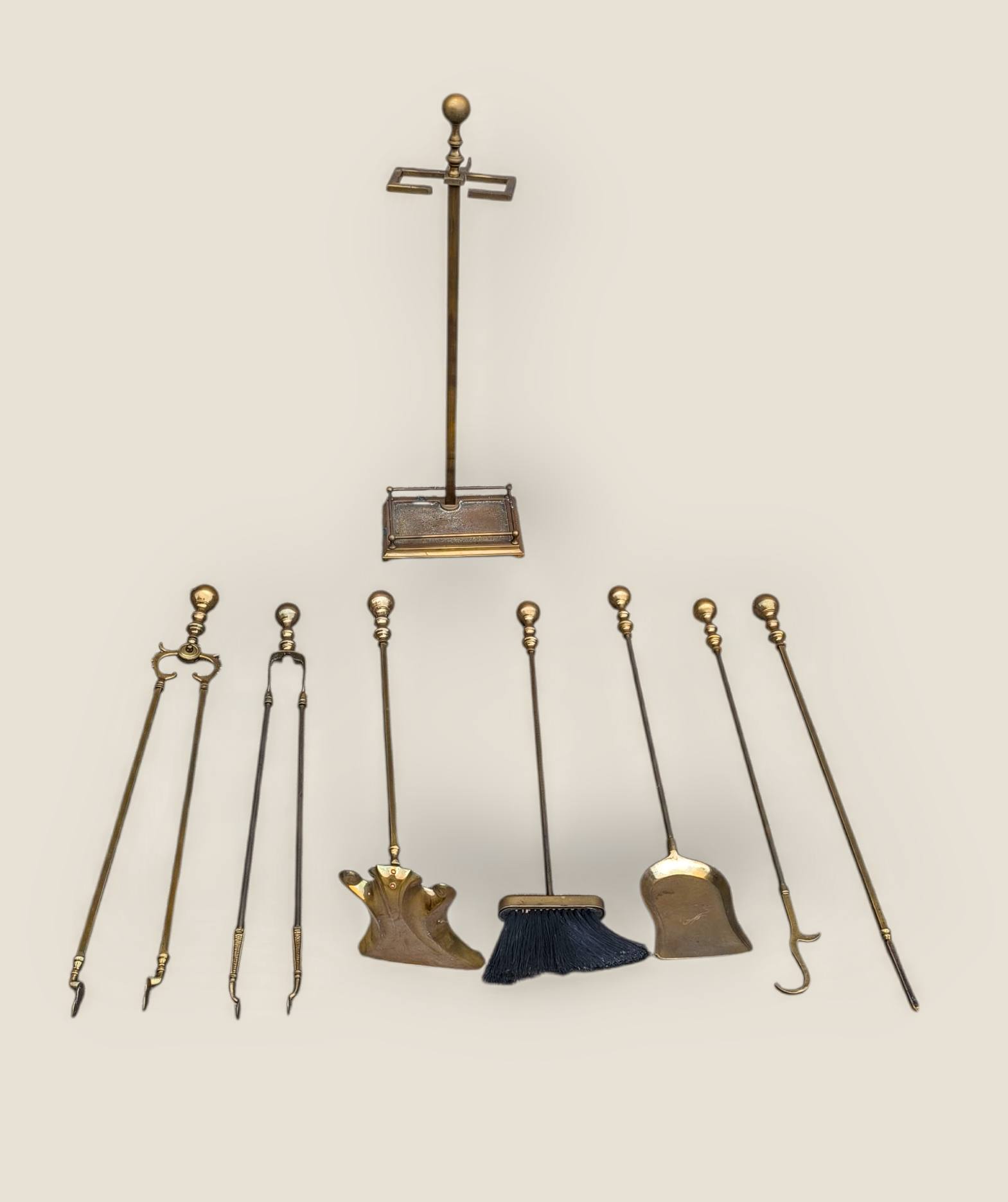 Eladó egy tömör rézből készült 8 db-os kandalló tisztító szett.