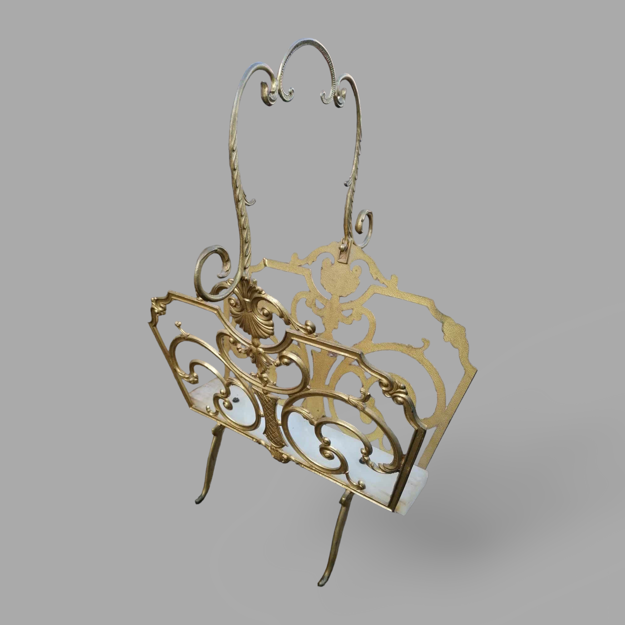 Eladó réz újságtartó szép állapotban. Kecses, részletgazdag réz elemekkel, az aljában márványlap a fő súlyát adja a darabnak, ezáltal stabil. Ideális ajándéknak is.