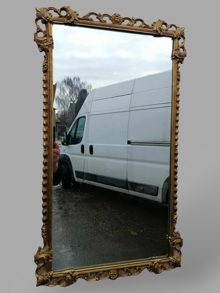 Eladó réz keretes tükör szép állapotban. Körben díszes, rézből készült tömör kerettel. Mutatós, különleges darab.