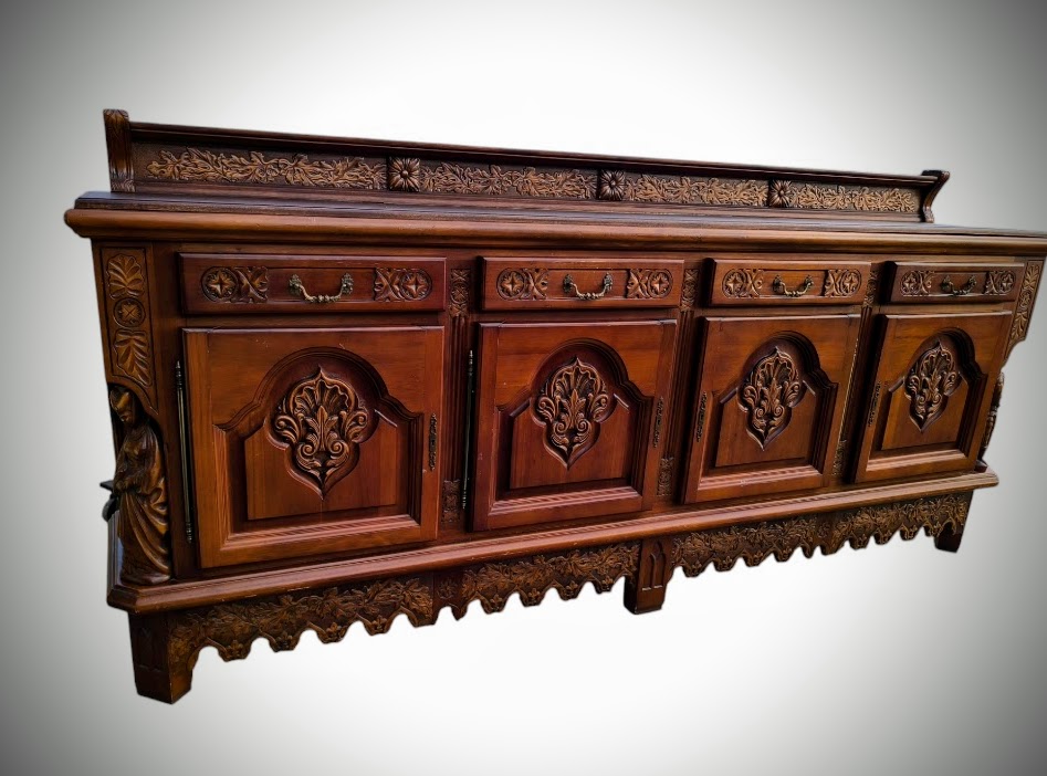 -A tálaló 285 cm hosszú,50 cm mély és 110 cm magas + a levehető csúcsdísz +18 cm.